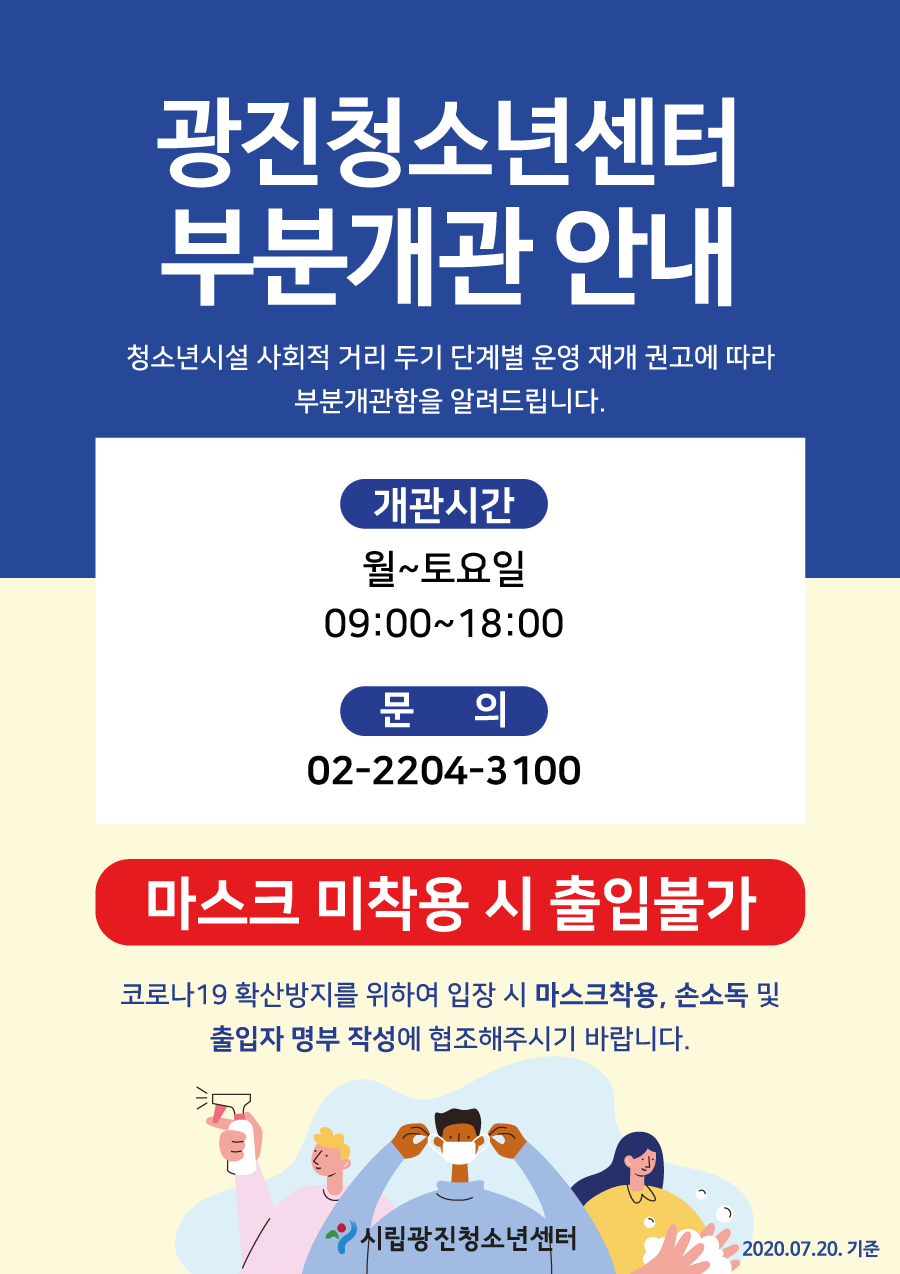 | ±¤ÁøÃ»¼Ò³â¼¾ÅÍ ºÎºÐ°³°ü ¾È³»(07.20±âÁØ) | ||