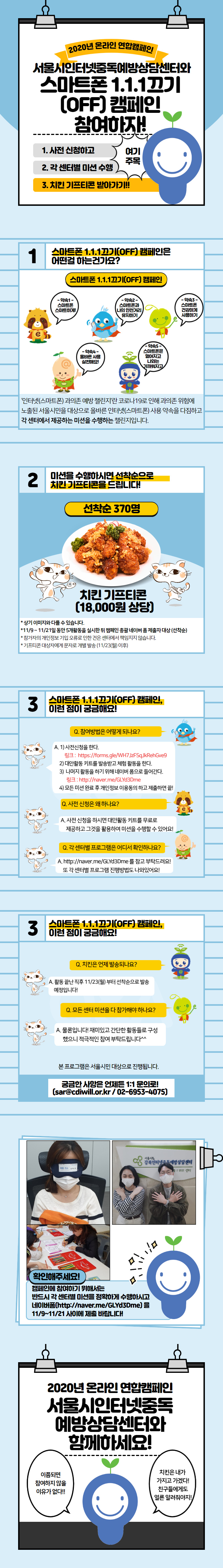 2020³â ¼¿ï½ÃÀÎÅͳÝÁßµ¶¿¹¹æ»ó´ã¼¾ÅÍ ¿Â¶óÀÎ ¿¬ÇÕÄ·ÆäÀÎ '½º¸¶Æ®Æù 1.1.1²ô±â(OFF) Ä·ÆäÀÎ' 2020³â ¼¿ï½ÃÀÎÅͳÝÁßµ¶¿¹¹æ»ó´ã¼¾ÅÍ ¿Â¶óÀÎ ¿¬ÇÕÄ·ÆäÀÎÀ» ÁøÇàÇÕ´Ï´Ù. ¼¾Åͺ° ¹Ì¼Ç(5°³)¸¦ ¼öÇàÇÏ½Ã¸é ¼±Âø¼ø 370¸í¿¡°Ô 18,000¿ø »ó´çÀÇ Ä¡Å² ±âÇÁƼÄÜÀ» µå¸³´Ï´Ù. ÀÚ¼¼ÇÑ ³»¿ëÀº ÇÏ´Ü À̹ÌÁö¸¦ Âü°íÇØÁÖ¼¼¿ä. (¼¿ï ½Ã¹Î ´ë»óÀ¸·Î ÁøÇàÇÏ´Â Ä·ÆäÀÎ ÀÔ´Ï´Ù. Ÿ Áö¿ª °ÅÁÖÀÚ Âü¿© ºÒ°¡´É) * ¿¬ÇÕÄ·ÆäÀÎ »çÀüÁ¢¼ö (10/19~11/13) ¡Ù üÇè ŰƮ »çÀü½Åû ¡Ù https://forms.gle/WH7JzFSqJkRehGve9 * ¿¬ÇÕÄ·ÆäÀÎ º»ÆäÀÌÁö (11/09~11/21) ¡Ú ¸ðµç ¹Ì¼Ç ÈÄ Á¦Ãâ½Åû ¡Ú http://naver.me/GLYd3Dme