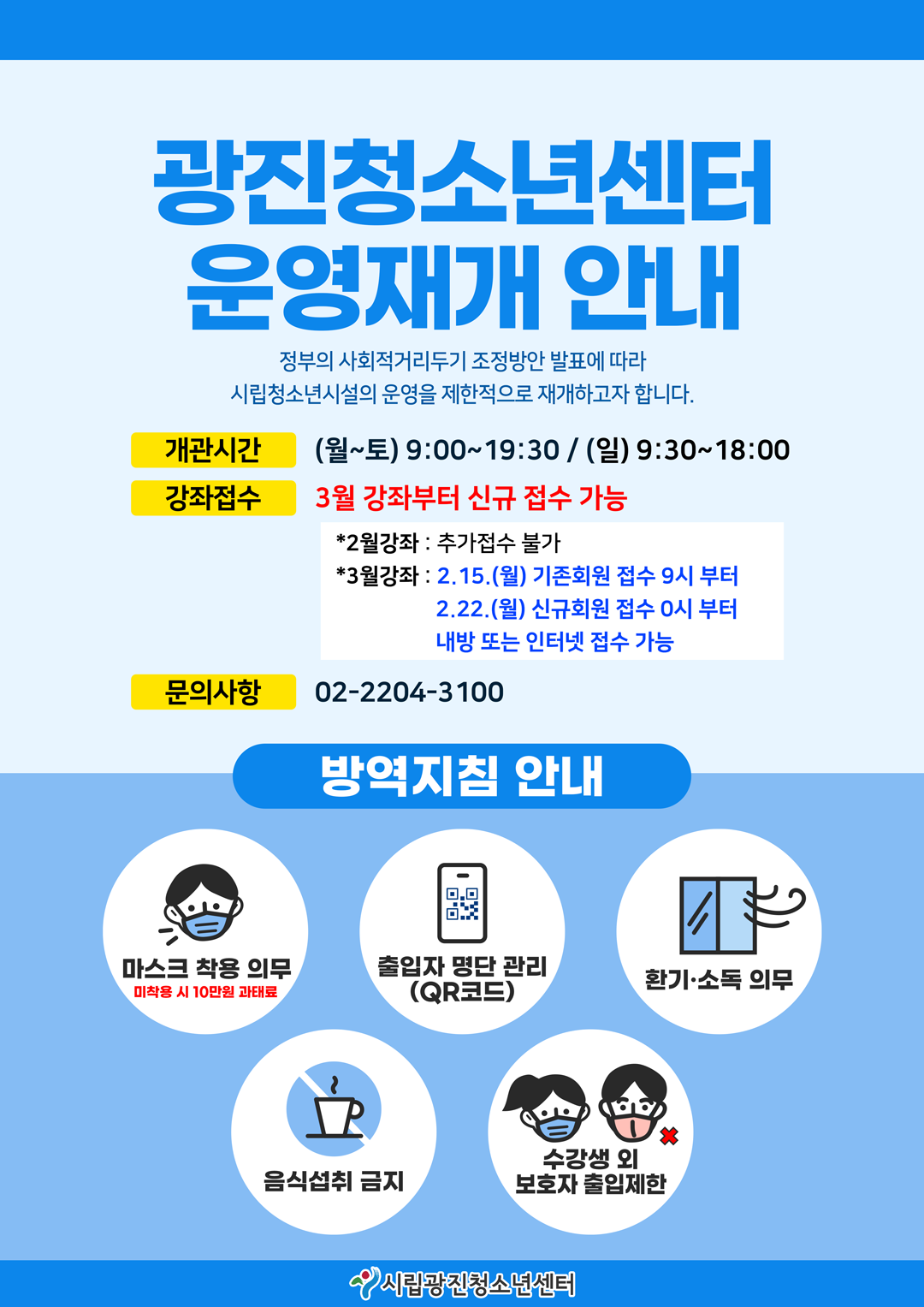 | ±¤ÁøÃ»¼Ò³â¼¾ÅÍ ¿î¿µÀç°³ ¾È³»(2/1~) | ||
