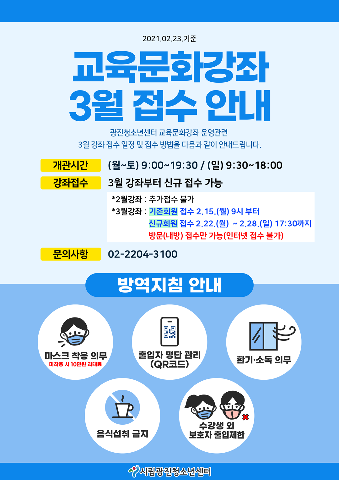 | ÀÛ¼ºÀÚ : ±¤ÁøÃ»¼Ò³â¼¾ÅÍ(@) ÀÛ¼ºÀÏ : 2021-02-23 Á¶È¸¼ö : 3717 | ||