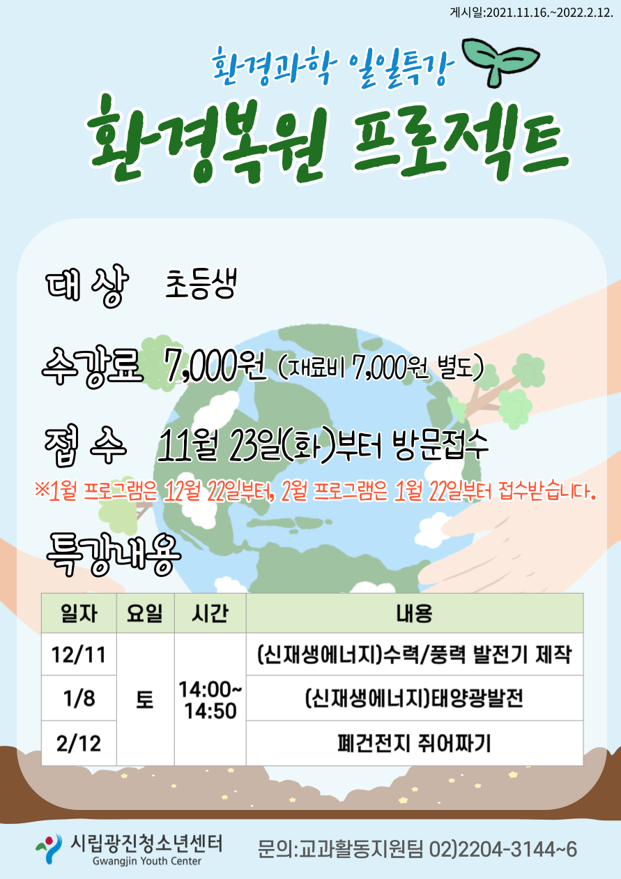 | ÀÛ¼ºÀÚ : ±¤ÁøÃ»¼Ò³â¼¾ÅÍ(@) ÀÛ¼ºÀÏ : 2021-11-16 Á¶È¸¼ö : 1810 | ||