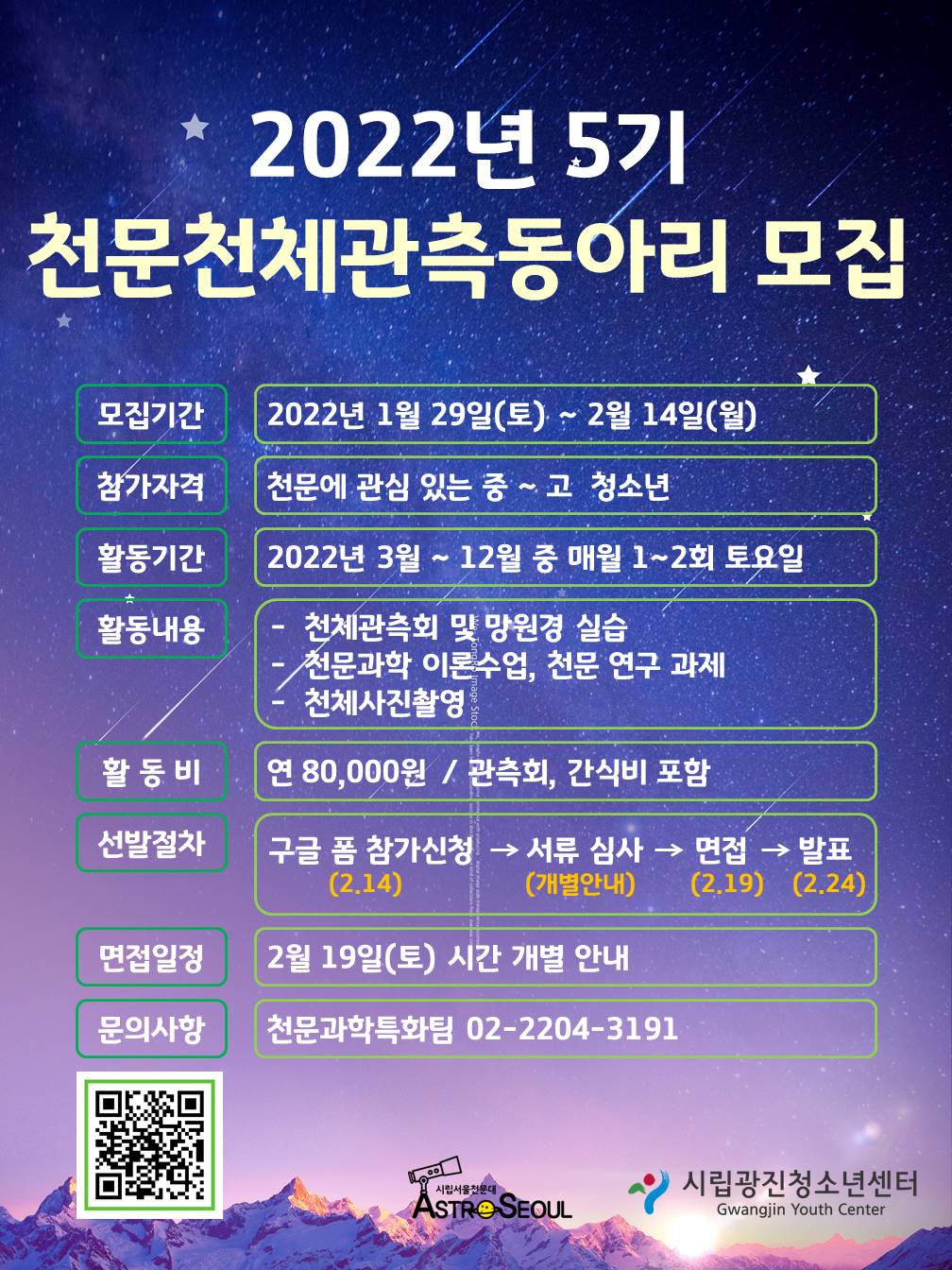 2022³â Á¦ 5±â õ¹®ÃµÃ¼°üÃøµ¿¾Æ¸® Âü°¡½Åû ¾È³» ¡á Ȱµ¿°³¿ä 1. ¸ðÁý±â°£ : 2022. 2. 4(±Ý) ~ 2. 16.(¼ö) 2. Âü°¡ÀÚ°Ý : õ¹®¿¡ °ü½É ÀÖ°í ÀÚ±âÁÖµµÀûÀÎ Áß¡¤°íµîÇб³ û¼Ò³â 3. Ȱµ¿±â°£ : 2022. 3 ~ 12 ¸Å¿ù 1~2ȸ Åä¿äÀÏ È°µ¿ 4. Ȱµ¿³»¿ë - µ¿¾Æ¸® ¿À¸®¿£Å×À̼Ç, ¿¬ÇÕµ¿¾Æ¸® ¹ß´ë½Ä ¹× ÇØ´Ü½Ä - õü°üÃøÈ¸ ¹× ¸Á¿ø°æ ½Ç½À - õ¹®À̷мö¾÷ - õ¹®¿¬±¸ °úÁ¦ - ±× ¿Ü Èñ¸ÁÇϴ Ȱµ¿ 5. ¼±¹ßÀýÂ÷ - ±¸±ÛÆû Âü°¡½Åû¼ Á¦Ãâ(2.14±îÁö) ¡æ ¼·ù ½É»ç(°³º°¾È³») ¡æ ¸éÁ¢(2.19) ¡æ ¹ßÇ¥(°³º°¾È³») ¡Ø Äڷγª19 »óȲ¿¡ µû¶ó Àå¼Ò ¹× ½Ã°£ Á¶Á¤ 6. Âü°¡½Åû : ±¸±ÛÆû ¸µÅ©(https://docs.google.com/forms/d/e/1FAIpQLSf_KZg42-qY-tE13SQ_LLgCvmnr_k8Fa4Ny0_sdlpI9v-m2TQ/viewform?usp=sf_link) 7. ¹®ÀÇ»çÇ×: õ¹®°úÇÐÆ¯ÈÆÀ(½Ã¸³¼¿ïõ¹®´ë) 02-2204-3191