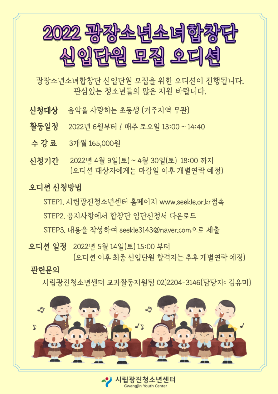 | [¸ðÁý] 2022³â ±¤Àå¼Ò³â¼Ò³àÇÕâ´Ü ½ÅÀÔ´Ü¿ø ¸ðÁý¾È³»(~4/30 24:00±îÁö) | ||