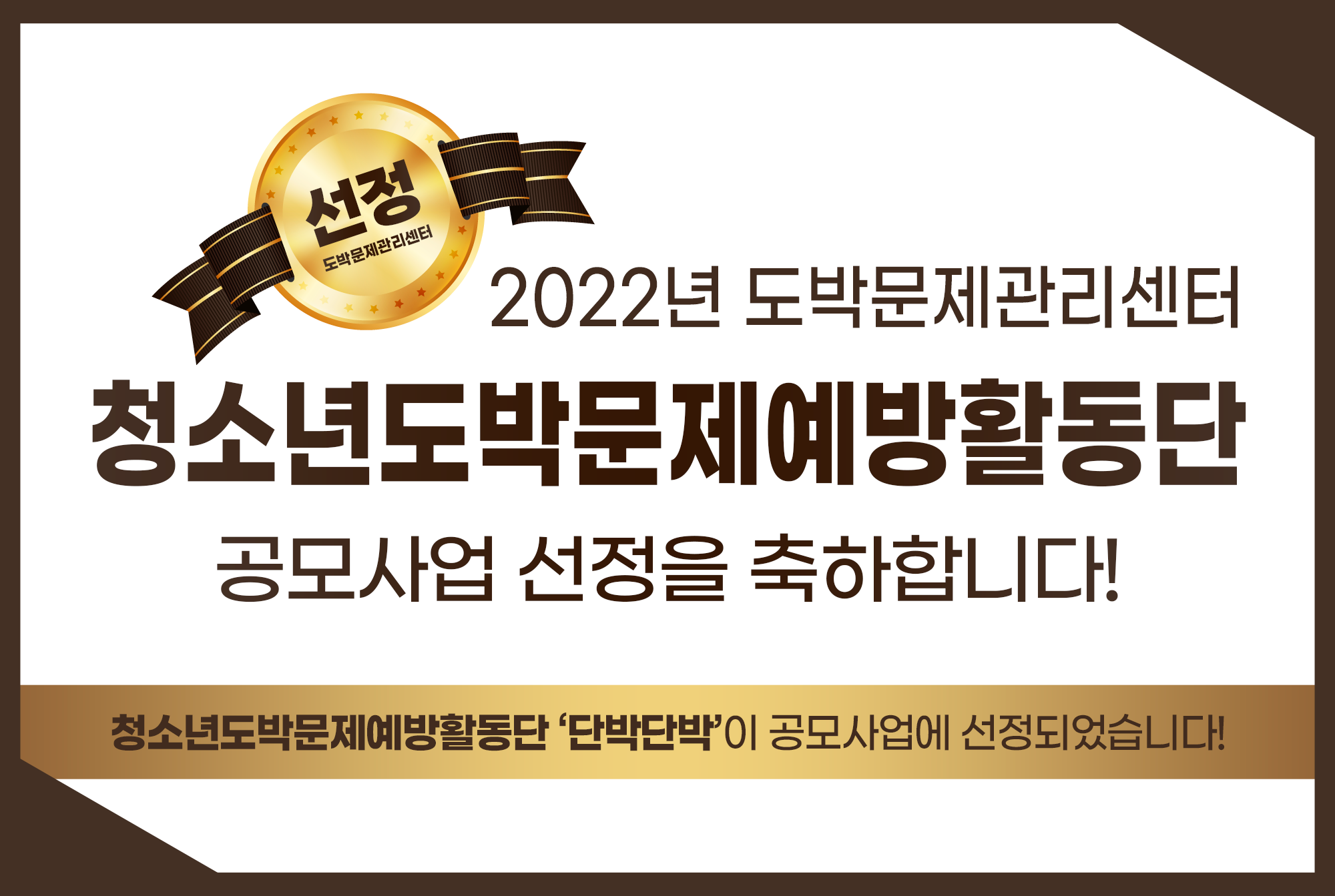 | 2022³â µµ¹Ú¹®Á¦°ü¸®¼¾ÅÍ °ø¸ð»ç¾÷ ¼±Á¤À» ÃàÇÏÇÕ´Ï´Ù! : û¼Ò³âµµ¹Ú¹®Á¦¿¹¹æÈ°µ¿´Ü '´Ü¹Ú´Ü¹Ú' | ||