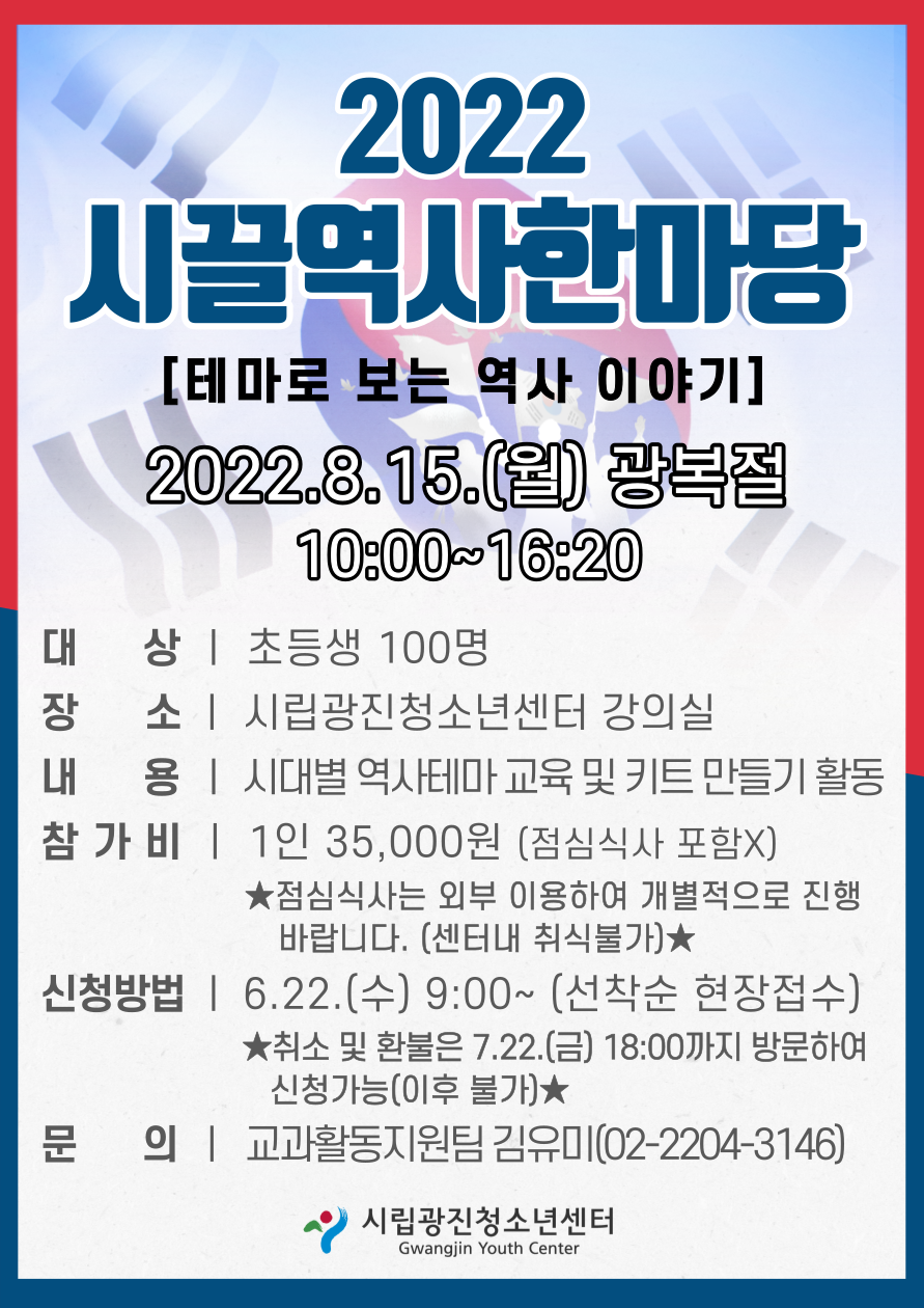 | ÀÛ¼ºÀÚ : ±¤ÁøÃ»¼Ò³â¼¾ÅÍ(@) ÀÛ¼ºÀÏ : 2022-05-25 Á¶È¸¼ö : 3297 | ||