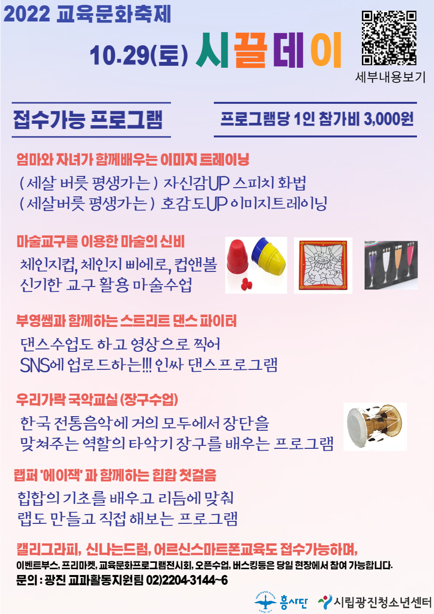 ÷ºÎµÈ PDFÆÄÀϲÀ ´Ù¿î¹ÞÀ¸¼Å¼ ÀÚ¼¼ÇÑ ÇÁ·Î±×·¥ ÀÏÁ¤, ´ë»óÀÌ ³ª¿ÍÀÖÀ¸´Ï ²À È®ÀÎÇØÁÖ¼¼¿ä. ±âŸ ±Ã±ÝÇϽŠ»çÇ×Àº 02)22040-3144~6 ±¤Áø ±³°úȰµ¿Áö¿øÆÀÀ¸·Î ¹®ÀÇÁÖ¼¼¿ä.