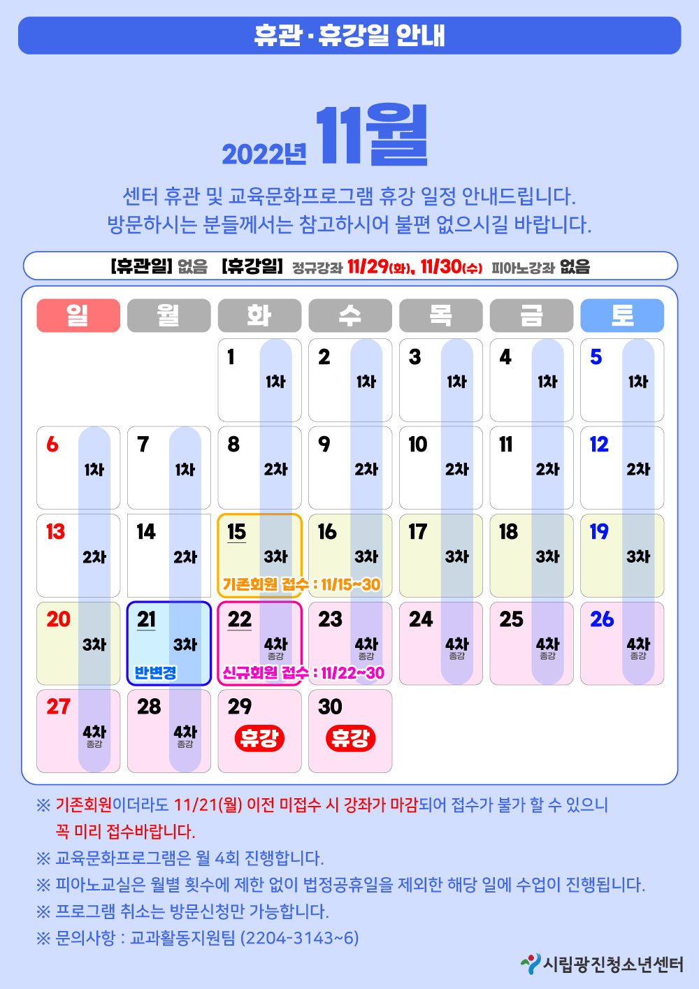 2. ÈÞ°ÀÏ : ¡Ü Á¤±Ô°Á 11/29(È), 11/30(¼ö) ¡Ü ÇǾƳë°Á ¾øÀ½