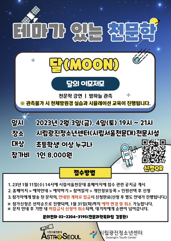 ¾È³çÇϼ¼¿ä, ½Ã¸³¼¿ïõ¹®´ëÀÔ´Ï´Ù. 2023³â 2¿ù 'Å׸¶°¡ Àִ õ¹®ÇÐ(´ÞÀÇ À̸ðÀú¸ð)' ÇÁ·Î±×·¥ÀÌ ¾Æ·¡¿Í °°ÀÌ ¿î¿µµÊÀ» ¾Ë·Áµå¸³´Ï´Ù. ¸ðÁý ¿¹¾àÀº 1.11.(¼ö) 14:00ºÎÅÍ ¼±Âø¼øÀ¸·Î ÁøÇàµË´Ï´Ù.
