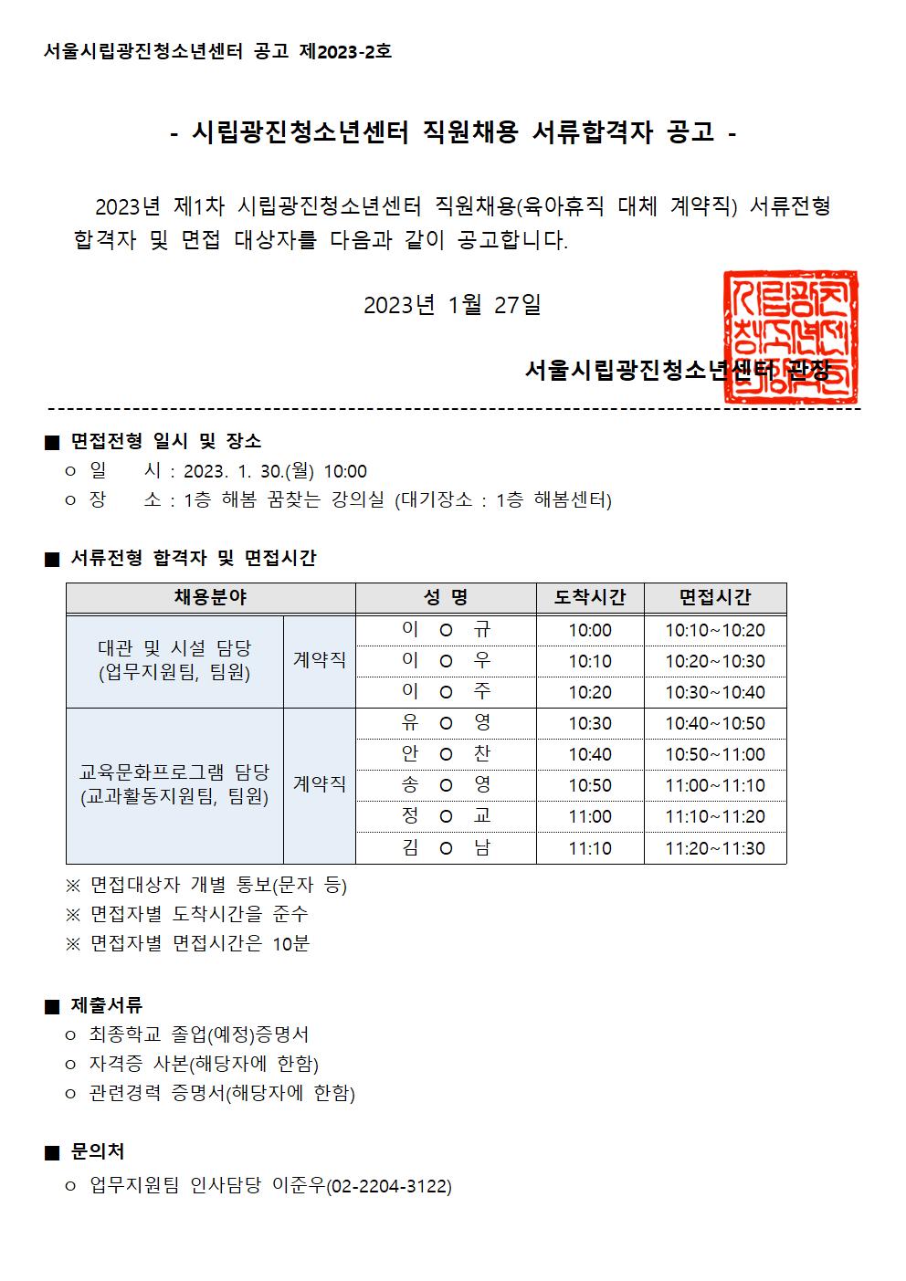 | [ä¿ë] ½Ã¸³±¤ÁøÃ»¼Ò³â¼¾ÅÍ Á÷¿øÃ¤¿ë ¼·ùÇÕ°ÝÀÚ(¸éÁ¢´ë»óÀÚ) °ø°í | ||