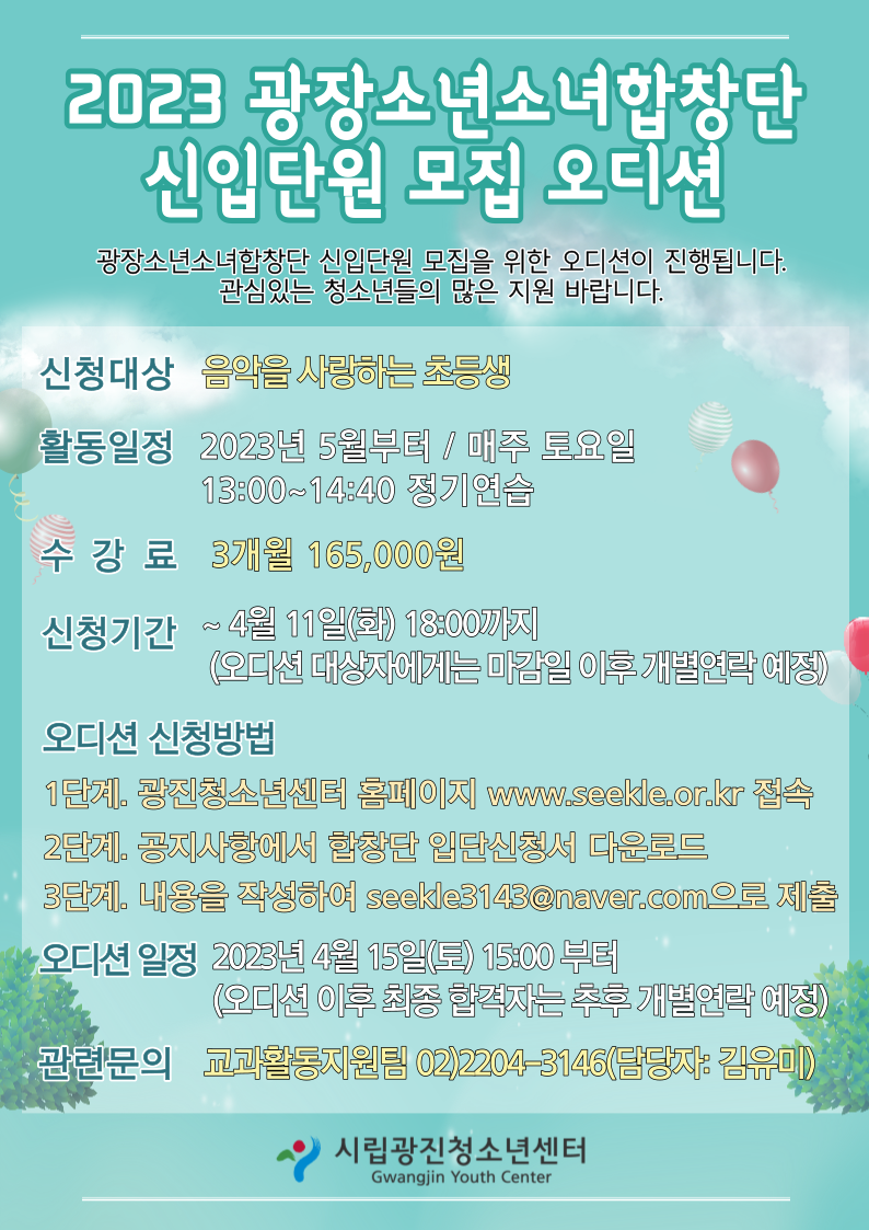 2023³â ±¤Àå¼Ò³â¼Ò³àÇÕâ´Ü ½ÅÀÔ´Ü¿ø ¸ðÁý¾È³»(~4/11 18:00±îÁö) | |||