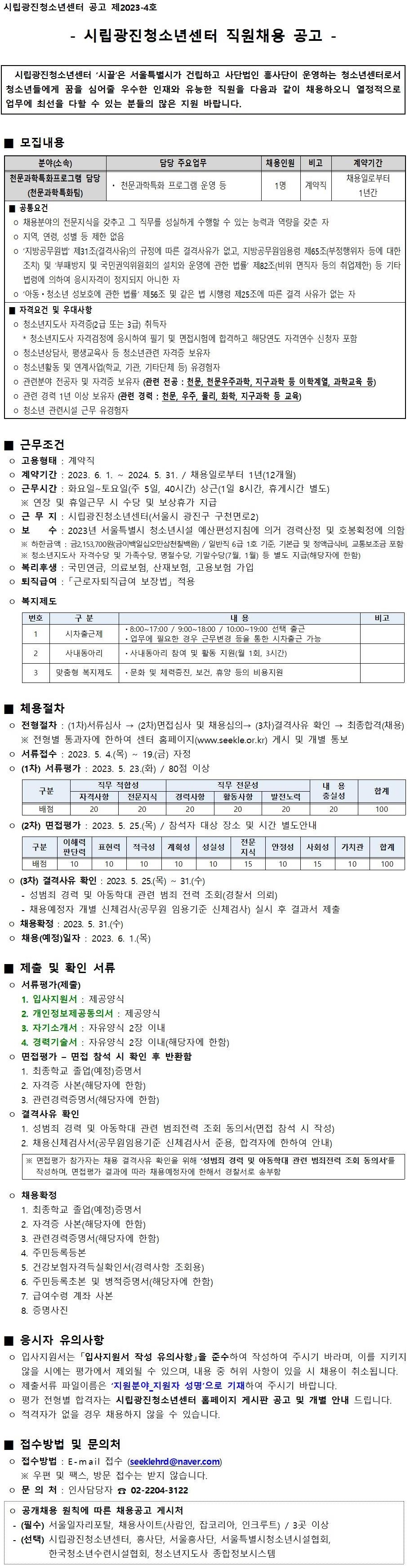 | ½Ã¸³±¤ÁøÃ»¼Ò³â¼¾ÅÍ Á÷¿øÃ¤¿ë °ø°í | ||