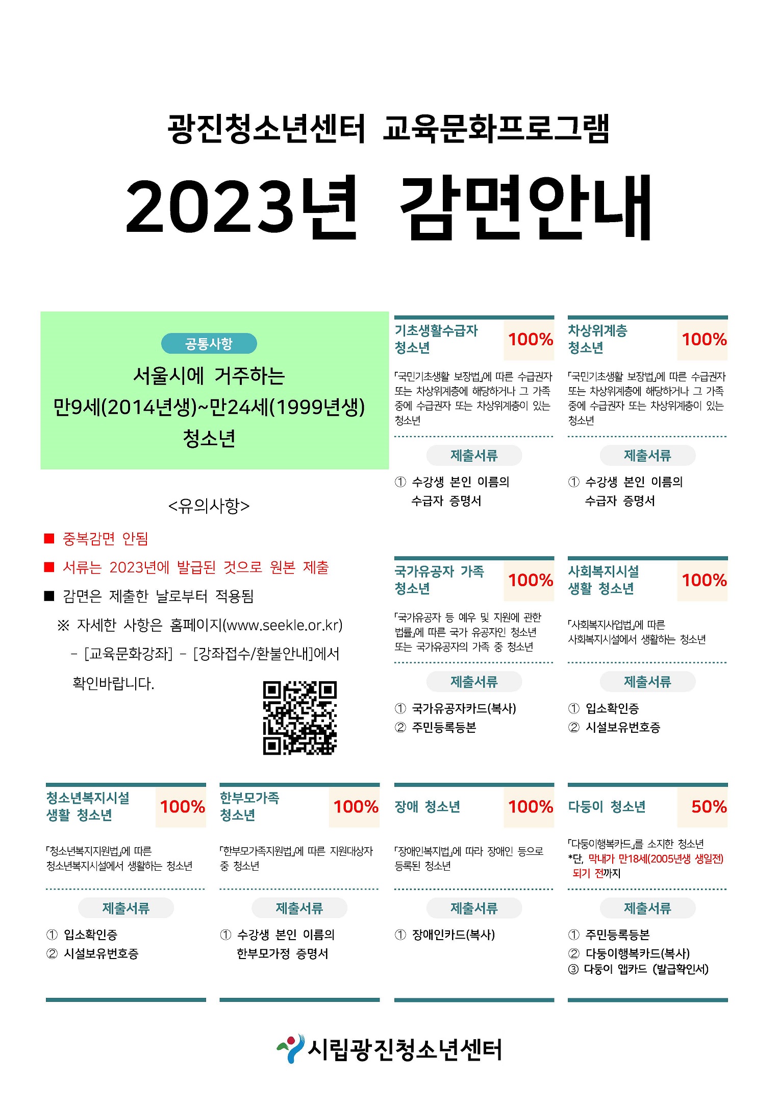 | ±³À°¹®ÈÇÁ·Î±×·¥ 2023³â °¨¸é ¾È³» | ||