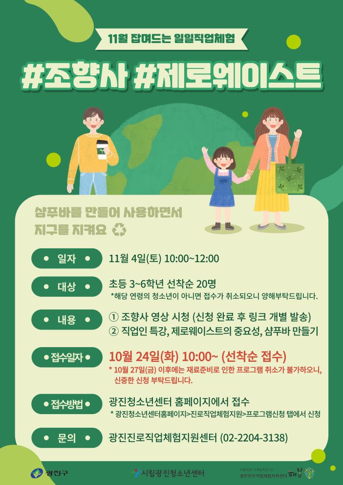 ¡ÛÀϽà : 11¿ù 4ÀÏ(Åä) 10:00~12:00 ¡ÛÀå¼Ò : ±¤ÁøÃ»¼Ò³â¼¾ÅÍ(´ë¸é) ¡Û´ë»ó : Ãʵî 3~6Çгâ 20¸í ¡Û³»¿ë : Á¶Çâ»ç¿ÍÀÇ ¸¸³², ȯ°æÀ» »ý°¢ÇÑ Ãµ¿¬ ¼¤Çª¹Ù ¸¸µé±â ¡ÛÁ¢¼öÀÏÀÚ : 10¿ù 24ÀÏ(È) 10:00~ ¡ÛÁ¢¼ö¹æ¹ý : https://www.seekle.or.kr/sub06/sub04_view.php?p_id=272&page=1& ¡Û±âŸ¾È³»: Ãë¼Ò ½Ã, ¹Ýµå½Ã ´ã´çÀÚ¿¡°Ô ¿¬¶ô ºÎʵ右´Ï´Ù. (02-2204-3138) À§ ½Åû¸µÅ© ³» °Ô½Ã±ÛÀ» ¹Ýµå½Ã Á¤µ¶ ÈÄ ½Åû ºÎʵ右´Ï´Ù! °Ô½Ã±ÛÀ» ÀÐÁö ¾Ê°í ¹ß»ýÇÏ´Â ºÒÀÌÀÍÀº Ã¥ÀÓÁöÁö ¾Ê½À´Ï´Ù😥
