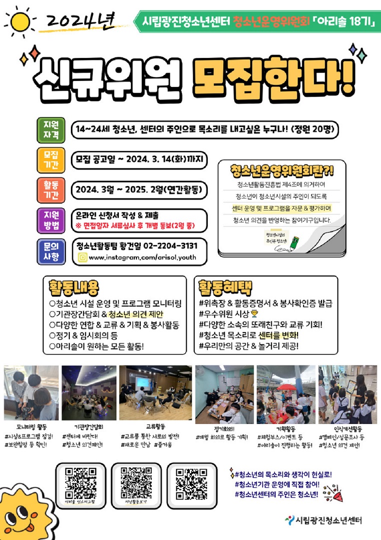 | 2024³â û¼Ò³â¿î¿µÀ§¿øÈ¸ ¾Æ¸®¼Ö 18±â À§¿ø ¸ðÁý!! "û¼Ò³â¼¾ÅÍÀÇ ÁÖÀÎÀ¸·Î ¸ñ¼Ò¸®¸¦ ³»°í½ÍÀº »ç¶÷ ¸ð¿©¶ó~~~~~~~~" | ||