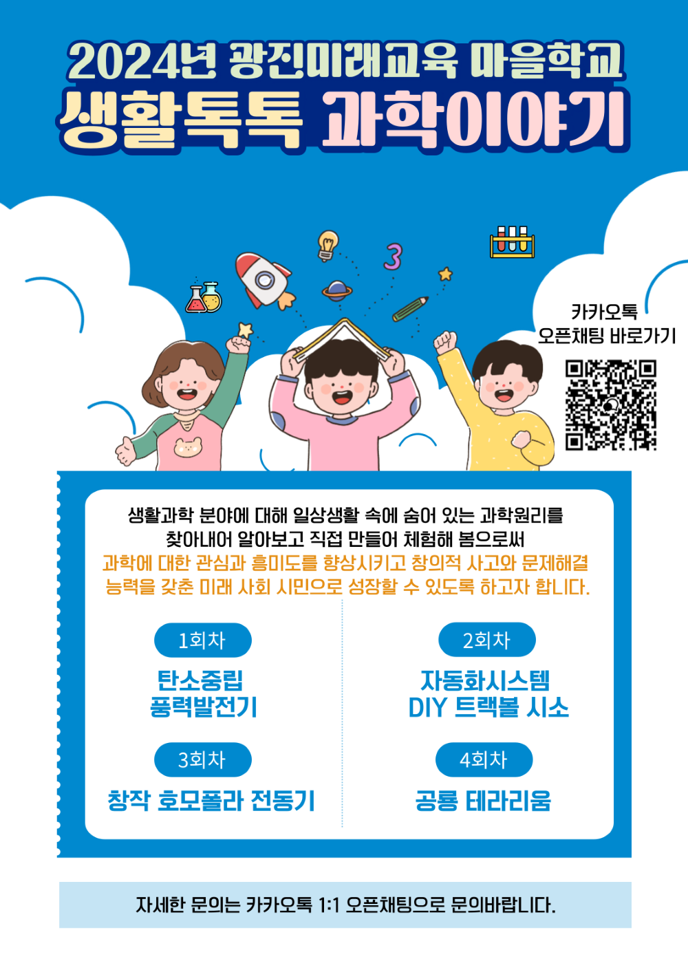 | 2024³â ±¤Áø¹Ì·¡±³À° ¸¶À»Çб³ '»ýȰÅåÅå °úÇÐÀ̾߱â' 3ȸÂ÷(8¿ù) Âü°¡ÀÚ ¸ðÁý ¾È³» | ||