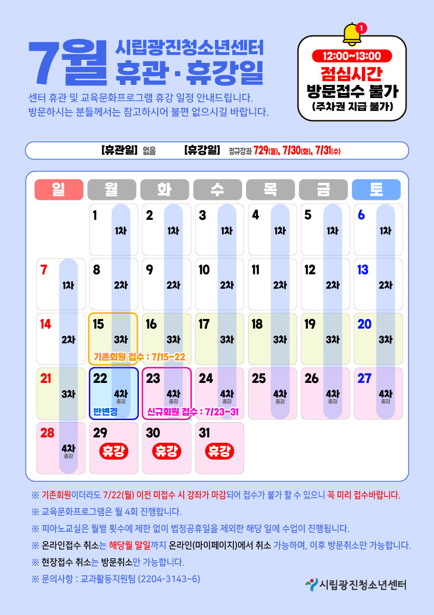 | 7¿ù ¼¾ÅÍ ÈÞ°ü/ÈÞ°ÀÏ ¾È³» | ||