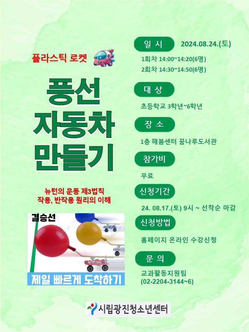 ±¤ÁøÃ»¼Ò³â¼¾ÅÍ¿¡¼ ´ºÅÏÀÇ ¿îµ¿ Á¦ 3¹ýÄ¢ ÀÛ¿ë, ¹ÝÀÛ¿ëÀÇ ¿ø¸®¸¦ ÀÌÇØÇϴ dz¼± ÀÚµ¿Â÷ ¸¸µé±â¸¦ ÁøÇàÇÏ·Á°í ÇÏ¿À´Ï ¸¹Àº °ü½É°ú Âü¿© ºÎʵ右´Ï´Ù. ±âŸ ±Ã±ÝÇÑ ³»¿ëÀº ±³°úȰµ¿Áö¿øÆÀ 02)2204-3144~6À¸·Î ¹®ÀÇ ¹Ù¶ø´Ï´Ù.