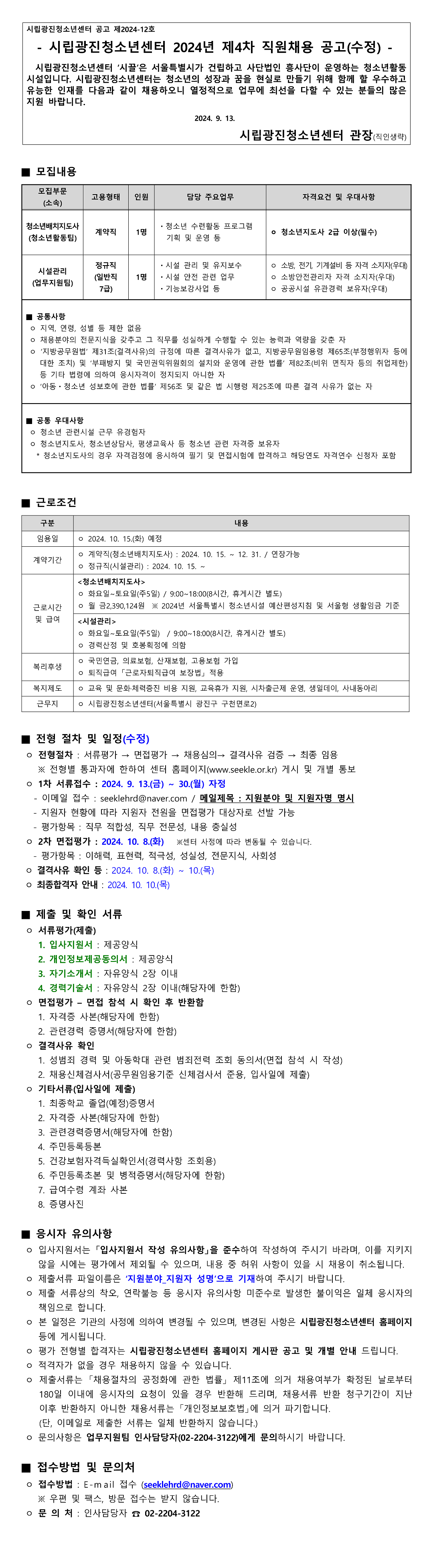 | ½Ã¸³±¤ÁøÃ»¼Ò³â¼¾ÅÍ Á÷¿øÃ¤¿ë °ø°í(û¼Ò³â¹èÄ¡Áöµµ»ç, ½Ã¼³°ü¸®) - ÀÏÁ¤ ¼öÁ¤ | ||