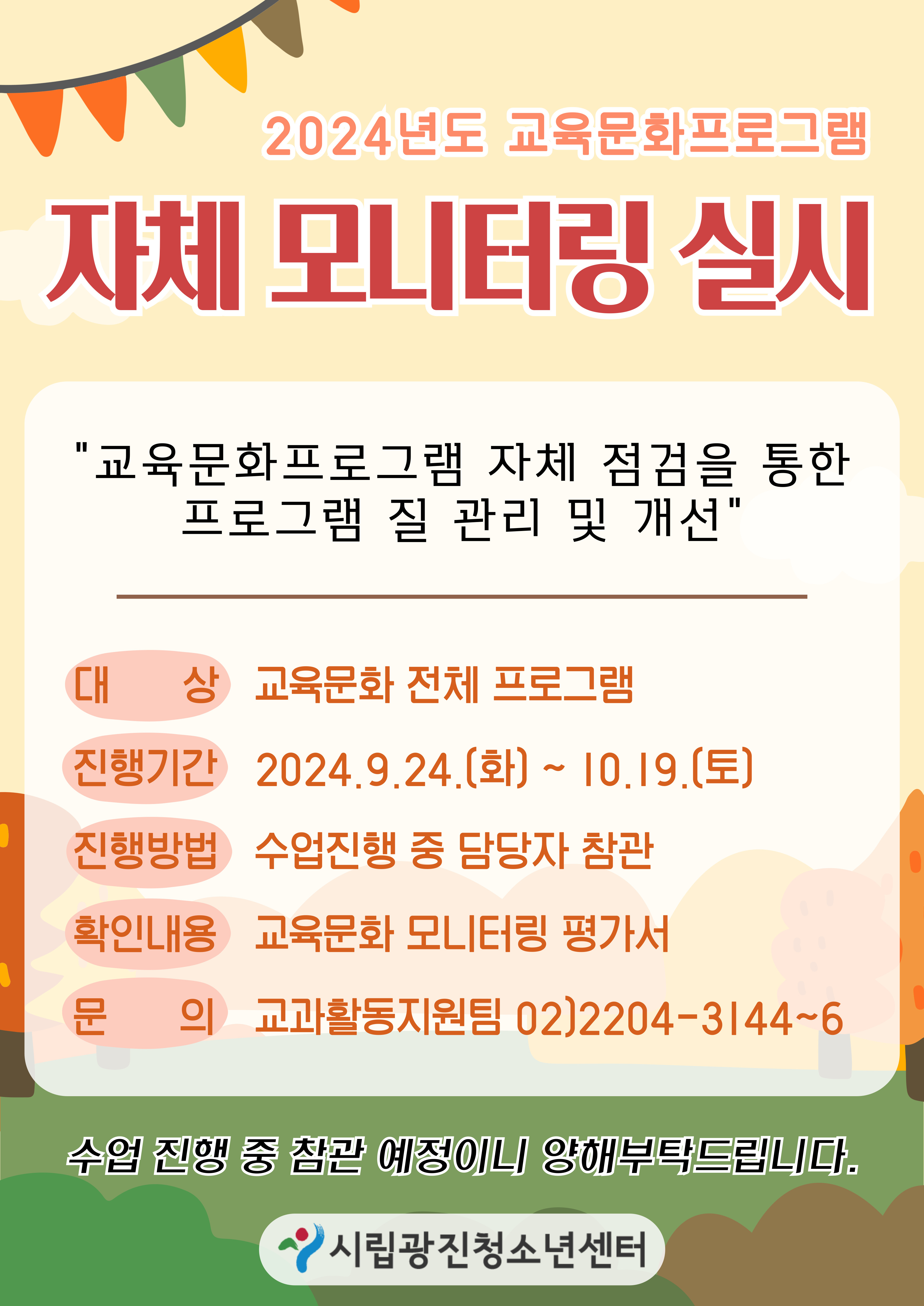 | [°øÁö] 2024³âµµ ±³À°¹®ÈÇÁ·Î±×·¥ ÀÚü¸ð´ÏÅ͸µ °øÁö | ||