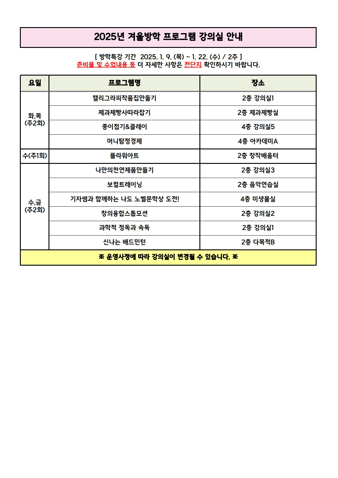 | [°øÁö] 2025³â °Ü¿ï¹æÇÐ ÇÁ·Î±×·¥ °ÀÇ½Ç ¾È³» | ||