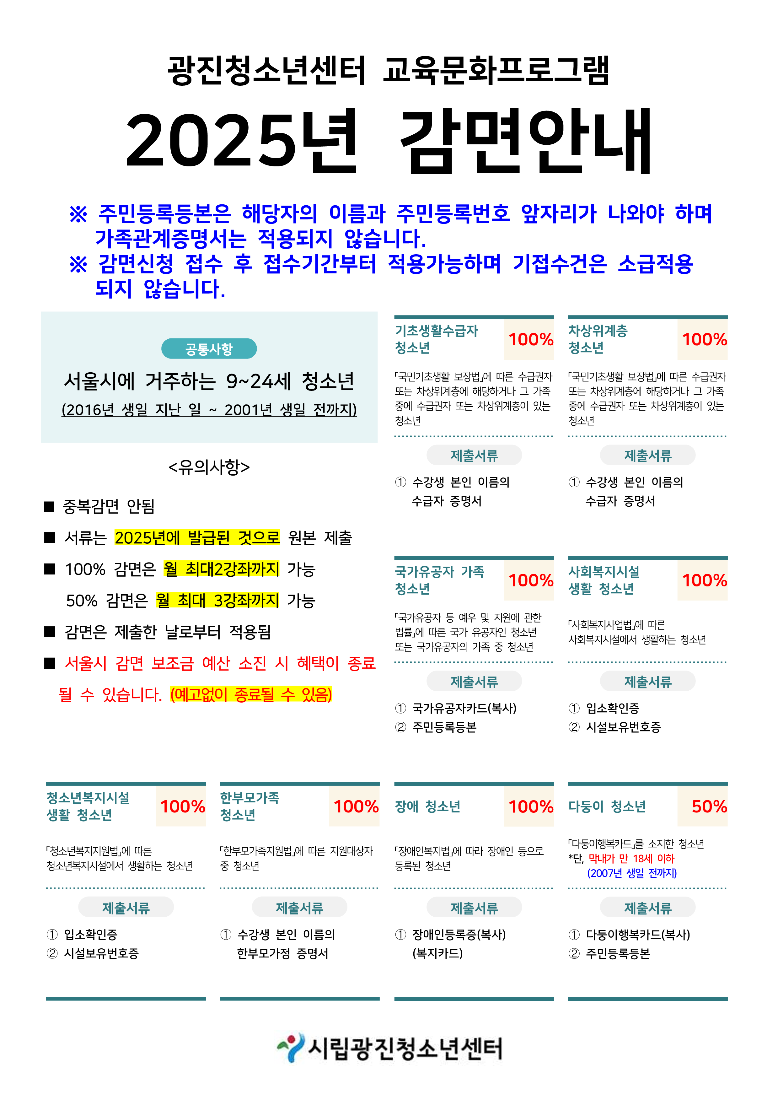 | ±¤ÁøÃ»¼Ò³â¼¾ÅÍ 2025³â °¨¸é ¾È³» | ||