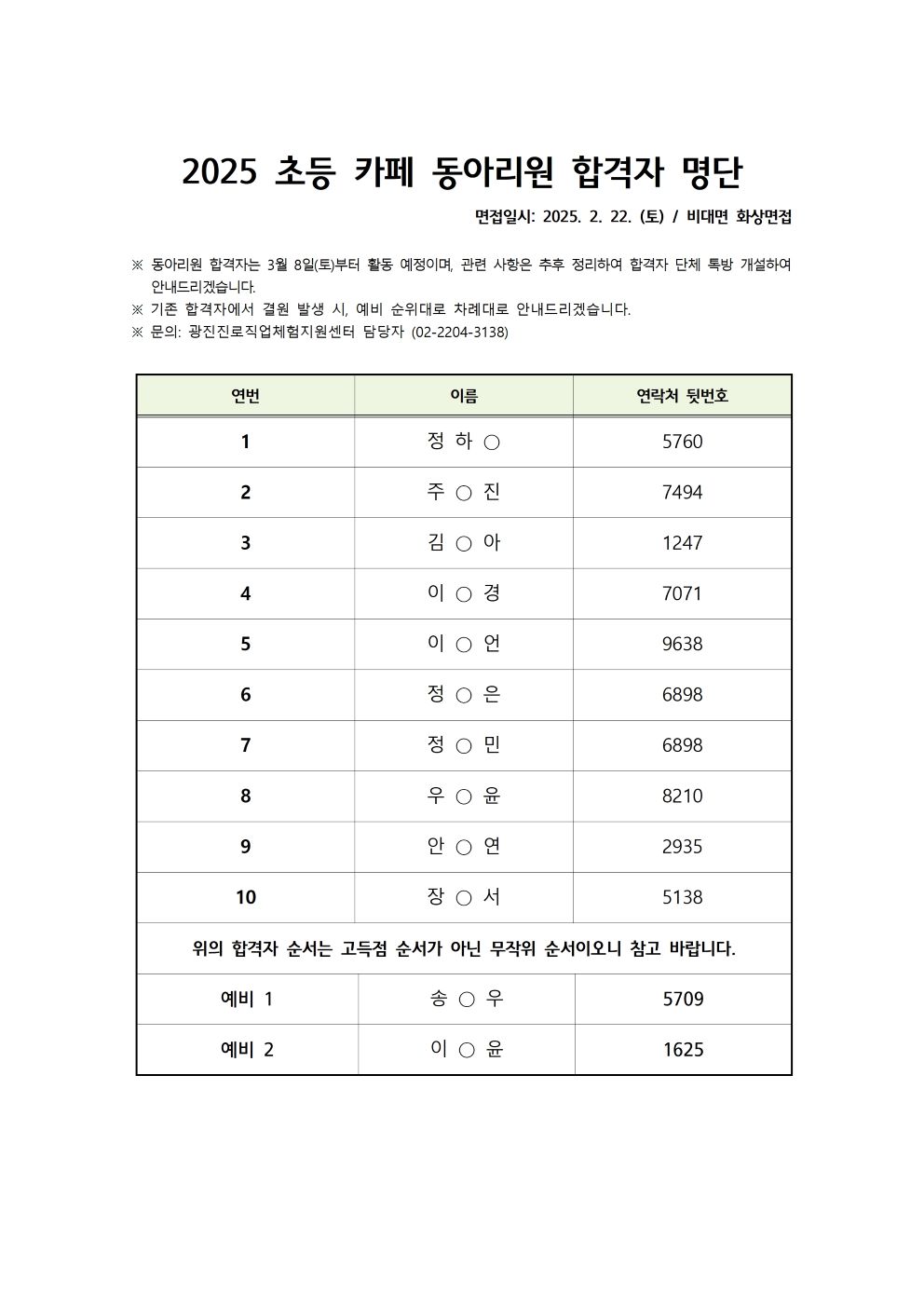 | 2025³â Ãʵî Ä«Æä â¾÷ µ¿¾Æ¸® ÇÕ°ÝÀÚ ¾È³» | ||