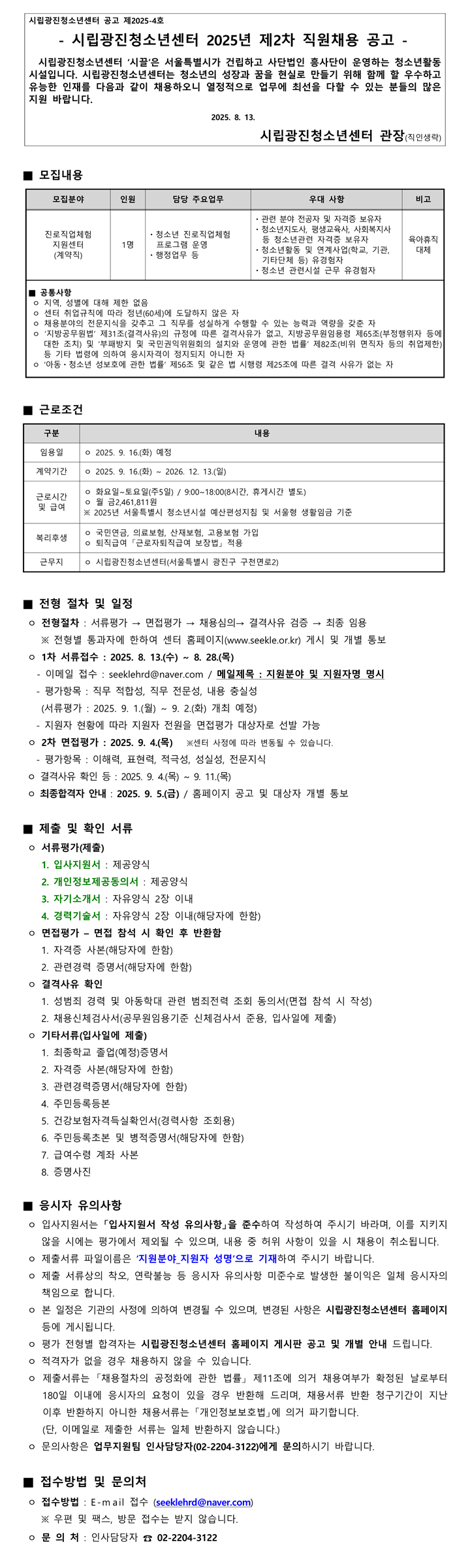 ÆÄÀÏ÷ºÎ : 1. 2025³â Á¦2Â÷ ä¿ë°ø°í(Áø·ÎÁ÷¾÷üÇèÁö¿ø¼¾ÅÍ).hwp 2. ÀÔ»çÁö¿ø ¼·ù.hwp | ||