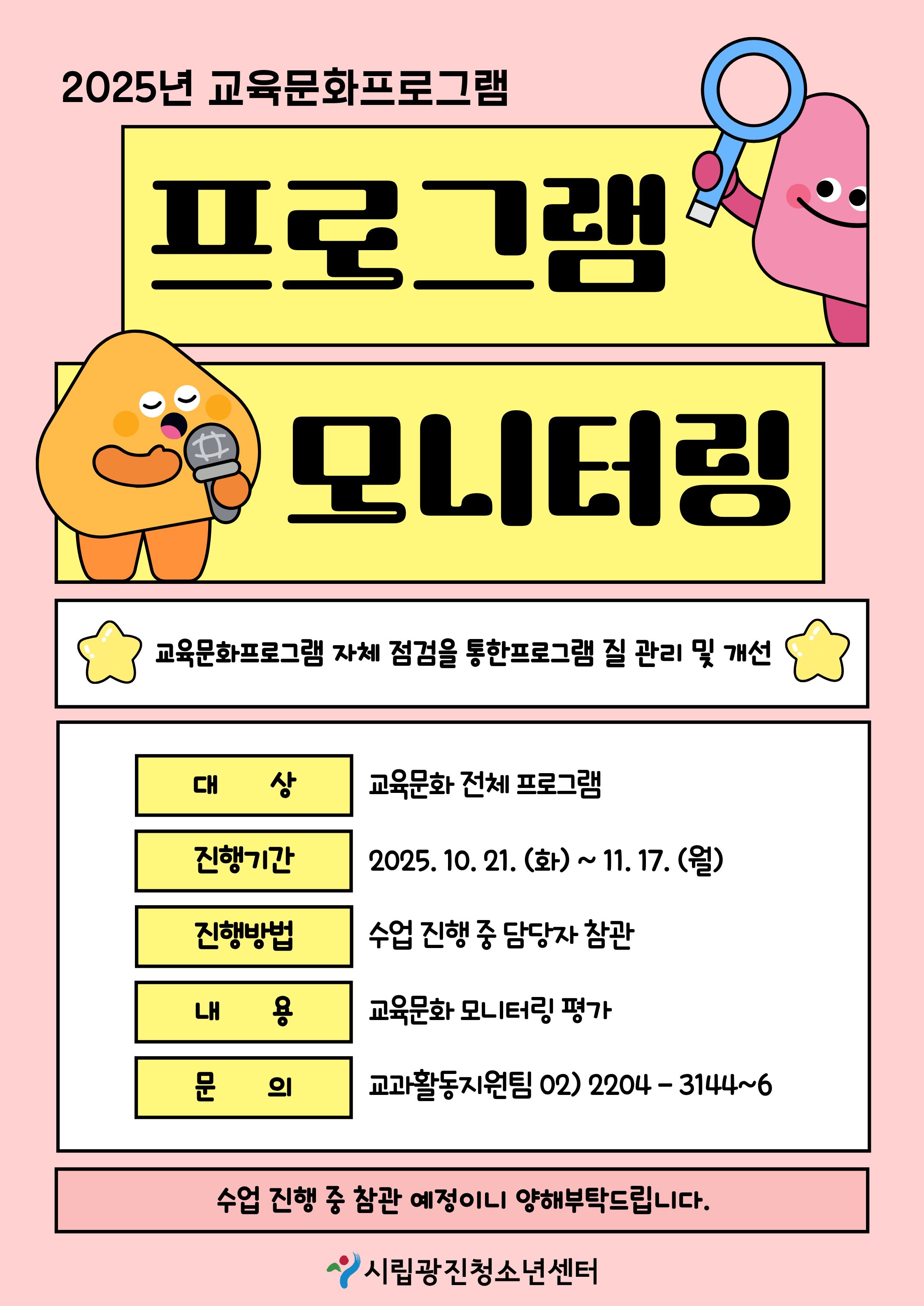 | [°øÁö] 2025³âµµ ±³À°¹®ÈÇÁ·Î±×·¥ ÀÚü¸ð´ÏÅ͸µ ¾È³» | ||