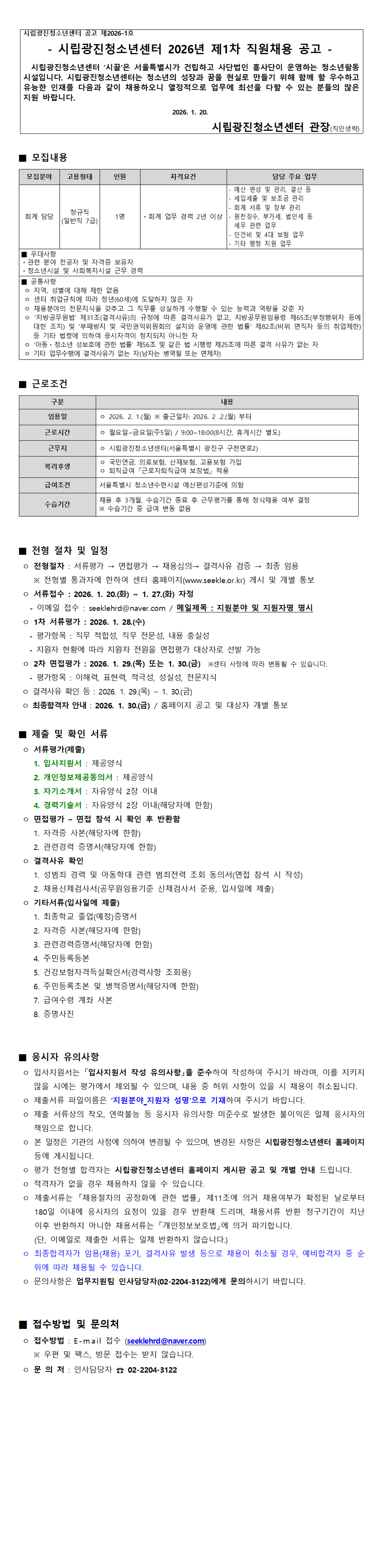 | [ä¿ë°ø°í] ±¤ÁøÃ»¼Ò³â¼¾ÅÍ Á÷¿ø ä¿ë(ȸ°è ´ã´ç) | ||