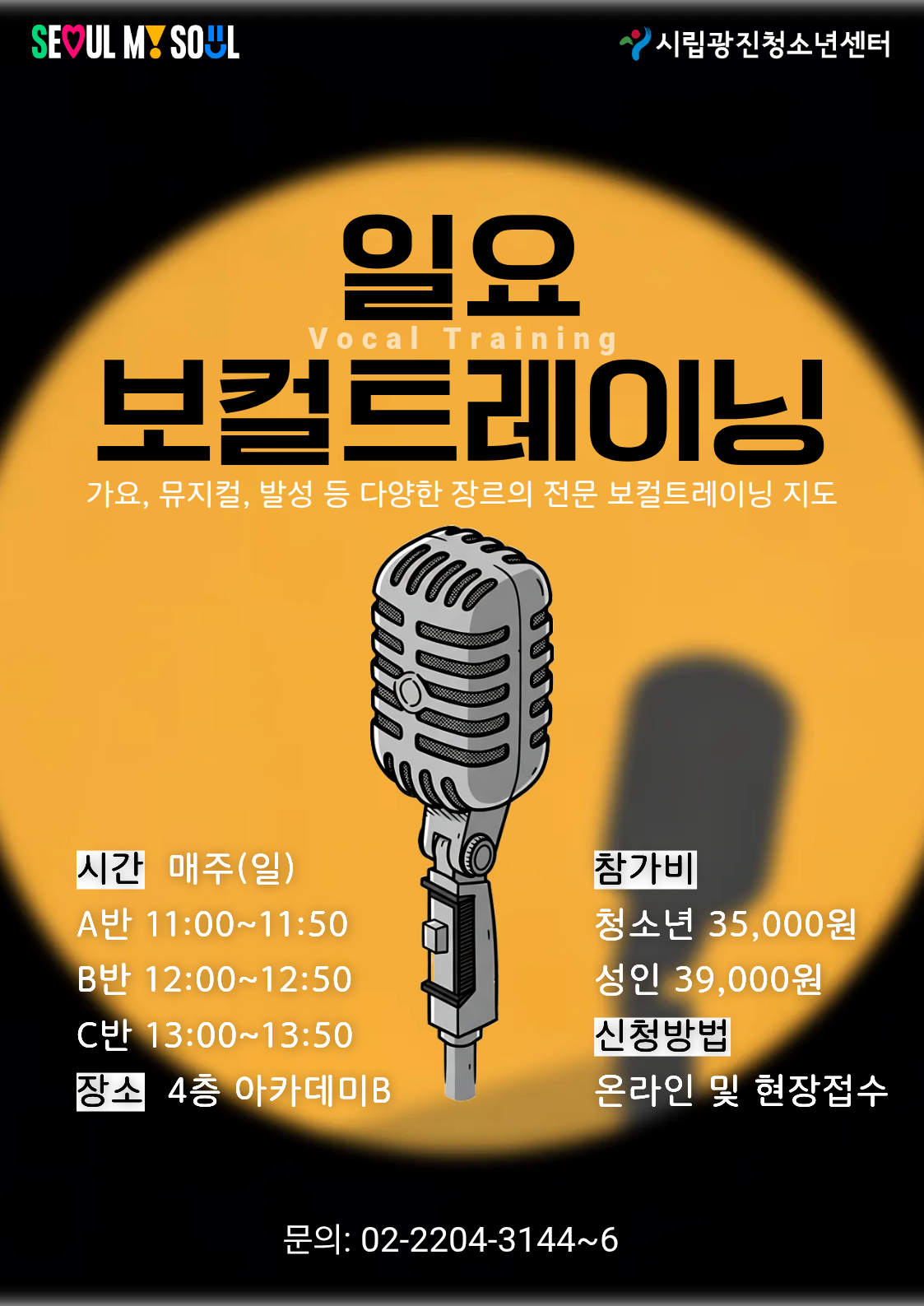 🗓 ÇÁ·Î±×·¥ ¾È³» ÀϽÃ: ¸ÅÁÖ (ÀÏ) A¹Ý: 11:00 ~ 11:50 B¹Ý: 12:00 ~ 12:50 C¹Ý: 13:00 ~ 13:50