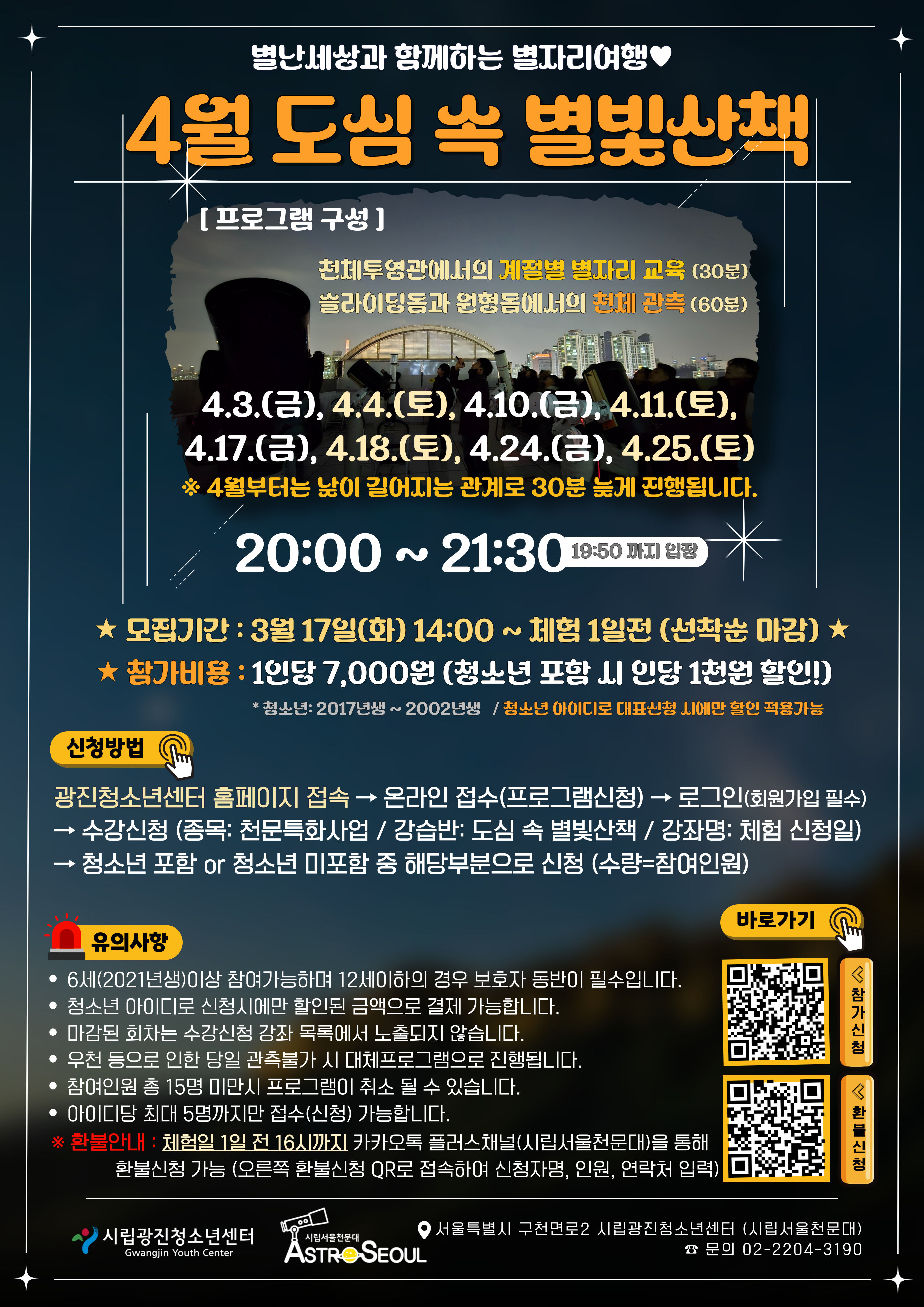 ÁøÇà ÀϽà : 4¿ù 3, 4, 10, 11, 17, 18, 24, 25ÀÏ 20:00 ~ 21:30