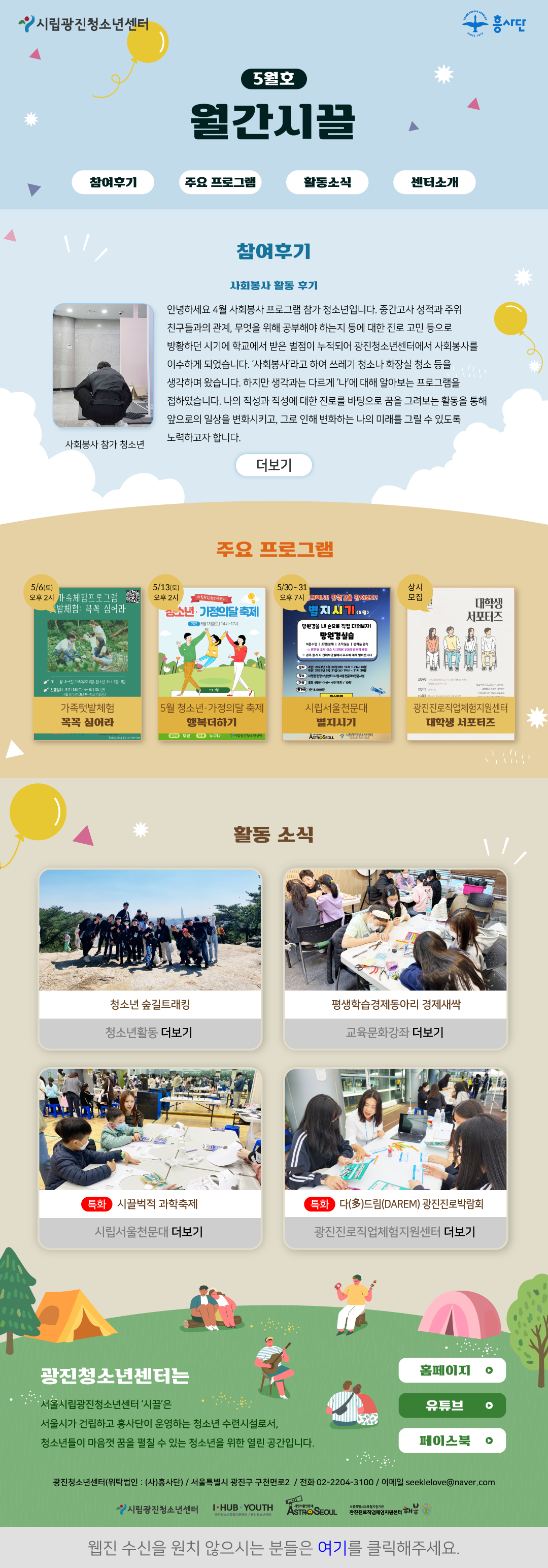 | ÀÛ¼ºÀÚ : ±¤ÁøÃ»¼Ò³â¼¾ÅÍ(@) ÀÛ¼ºÀÏ : 2023-05-04 Á¶È¸¼ö : 737 | ||