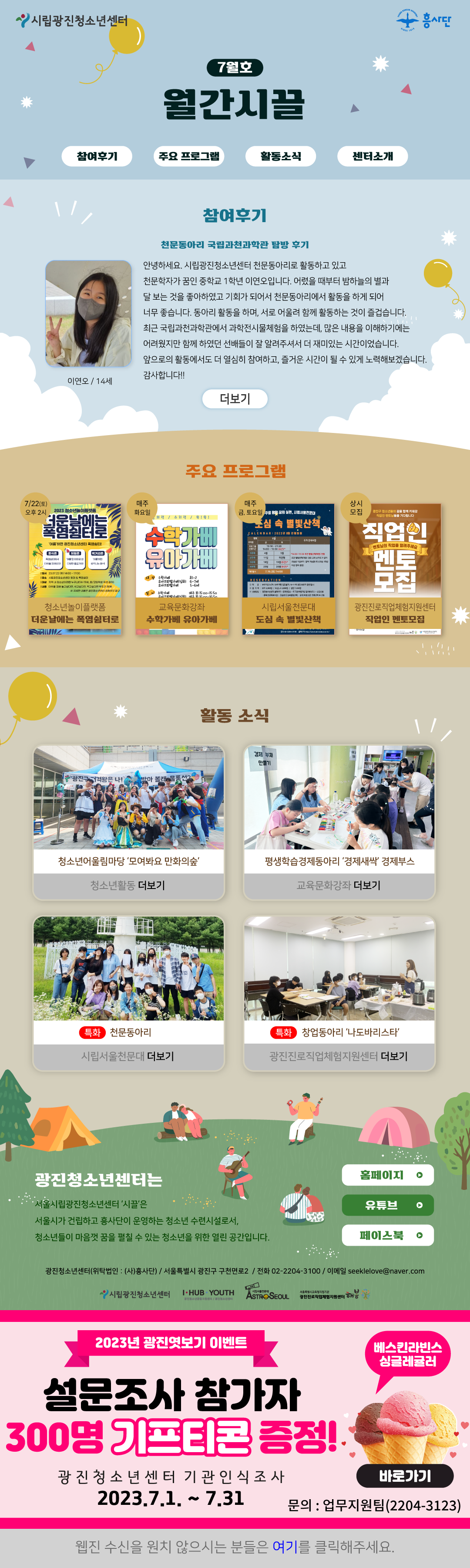 | ÀÛ¼ºÀÚ : ±¤ÁøÃ»¼Ò³â¼¾ÅÍ(@) ÀÛ¼ºÀÏ : 2023-07-01 Á¶È¸¼ö : 687 | ||