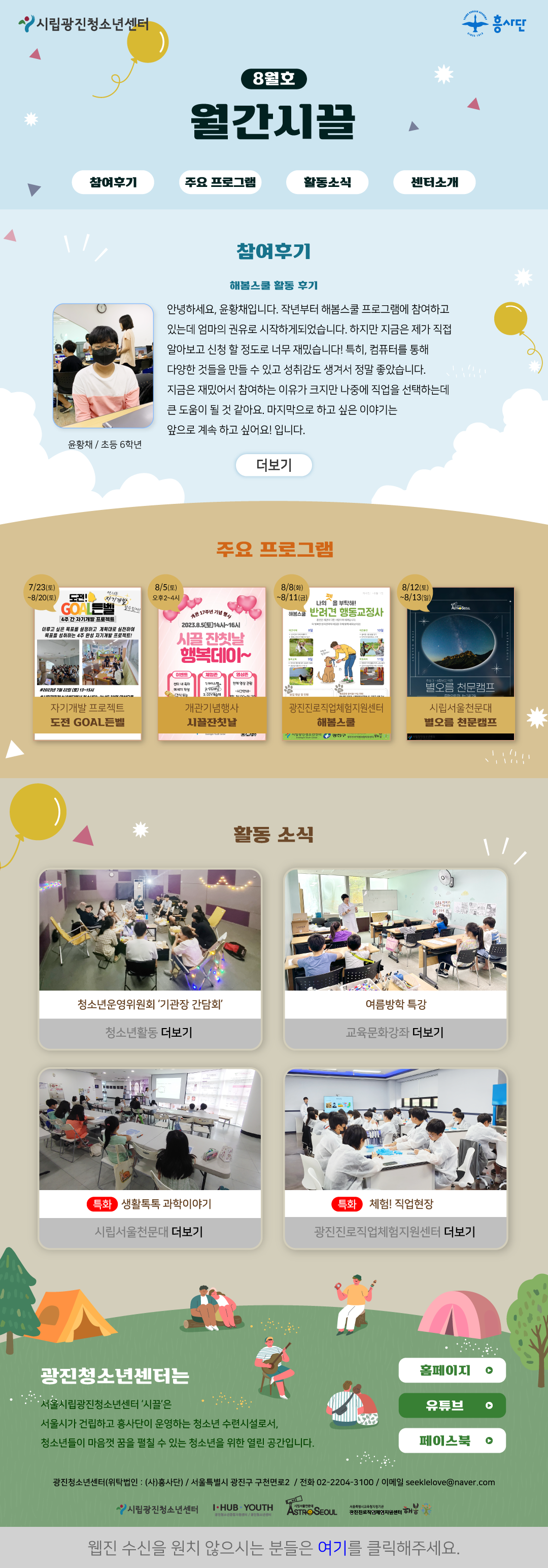 | ÀÛ¼ºÀÚ : ±¤ÁøÃ»¼Ò³â¼¾ÅÍ(@) ÀÛ¼ºÀÏ : 2023-08-10 Á¶È¸¼ö : 772 | ||