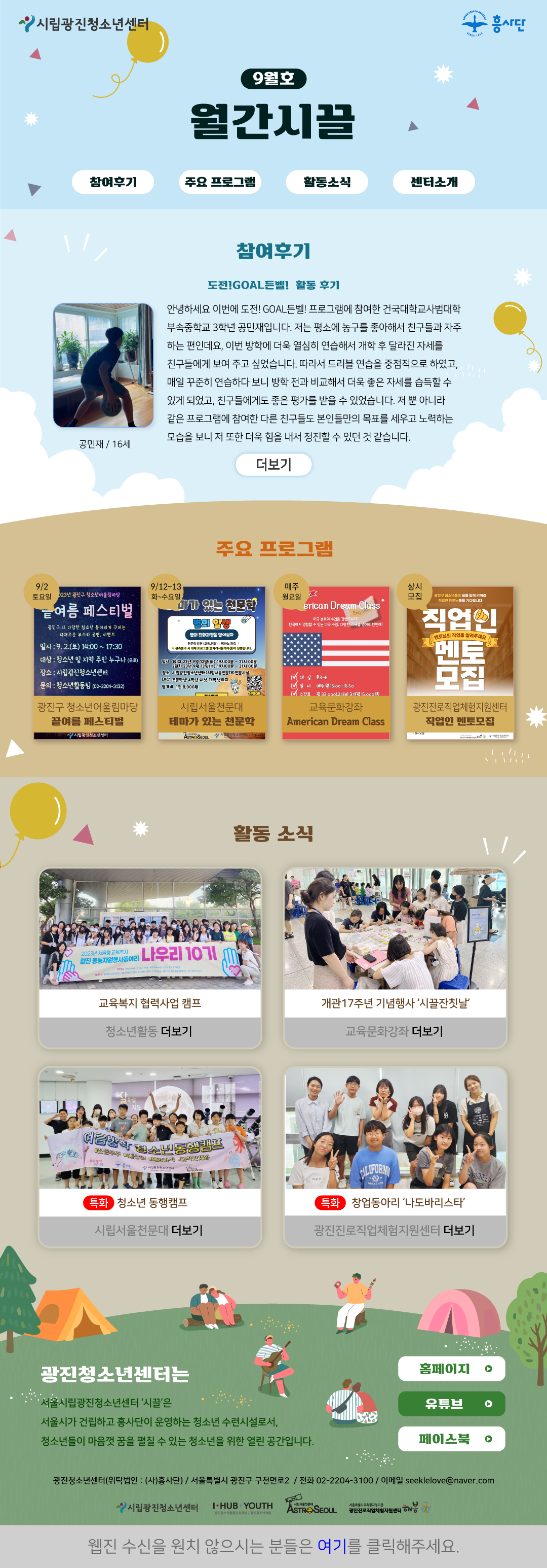 | ÀÛ¼ºÀÚ : ±¤ÁøÃ»¼Ò³â¼¾ÅÍ(@) ÀÛ¼ºÀÏ : 2023-09-01 Á¶È¸¼ö : 586 | ||