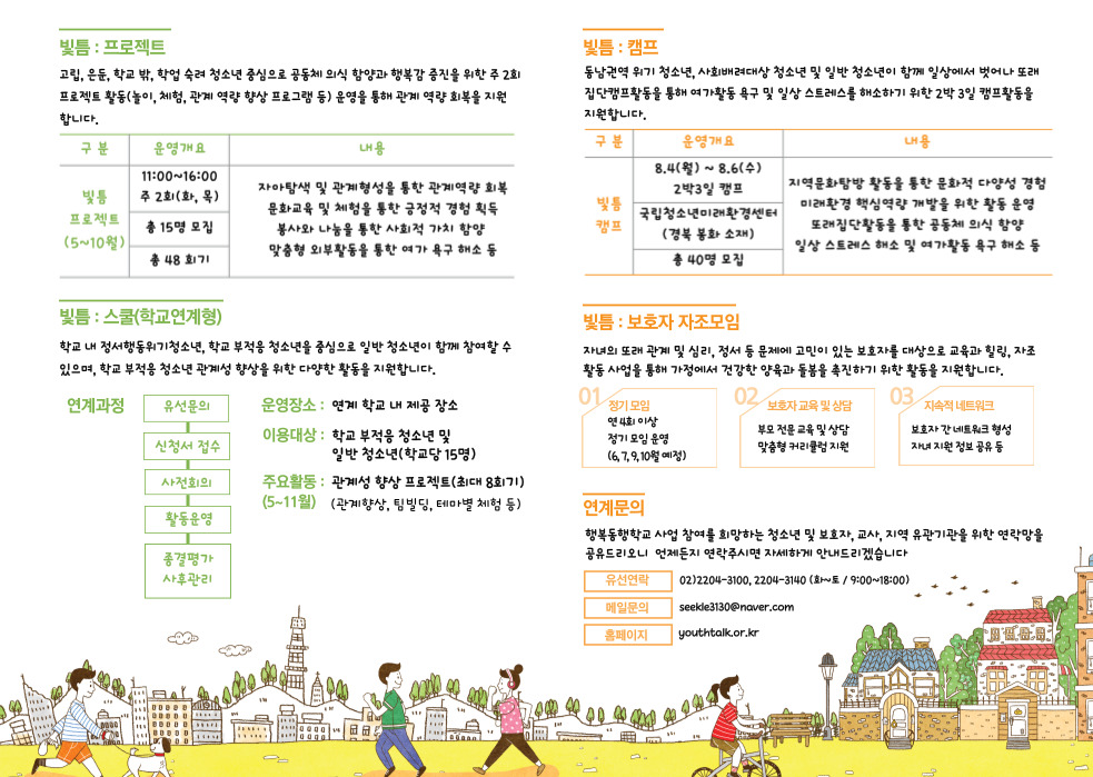 2025 ±¤ÁøÃ»¼Ò³âÁ¾ÇÕÁö¿ø¼¾ÅÍ¿¡¼ ¿î¿µÇÏ´Â Çູµ¿ÇàÇб³´Â ÀºµÐ ¹× °í¸³ û¼Ò³â, Çб³ ¹Û û¼Ò³â, Çб³ ºÎÀûÀÀ û¼Ò³âÀ» Áß½ÉÀ¸·Î Áö¿ª»çȸ ³» û¼Ò³â ¹× º¸È£ÀÚ¸¦ À§ÇÑ ´Ù¾çÇÑ ÇÁ·Î±×·¥À» ¿î¿µÇÕ´Ï´Ù. ¾Æ·¡ ³»¿ëÀ» Âü°íÇÏ½Ã¾î °ü½É Àִ û¼Ò³â ¶Ç´Â º¸È£ÀÚ²²¼´Â 02)2204-3140, ¶Ç´Â 02)2204-3100À¸·Î ¾ðÁ¦µçÁö ¿¬¶ôÁֽøé Ä£ÀýÇÏ°Ô ¾È³»µå¸®°Ú½À´Ï´Ù. ¶ÇÇÑ ÁÖº¯ û¼Ò³â ¶Ç´Â º¸È£ÀÚ¿¡°Ô È«º¸ÇØÁÖ½Ã¸é °¨»çÇϰڽÀ´Ï´Ù.