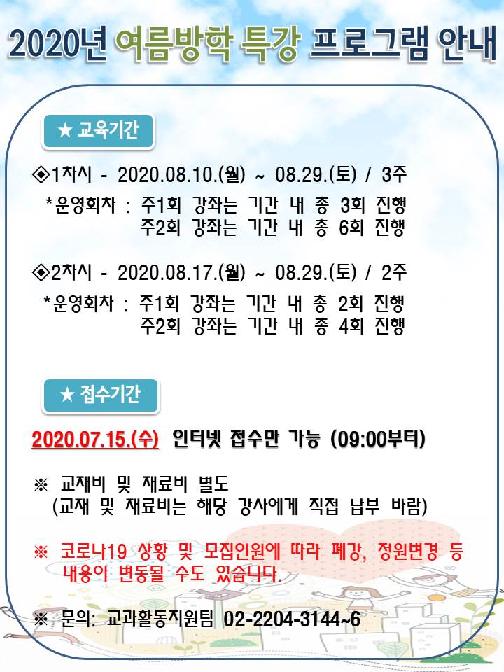 | 2020³â ¿©¸§¹æÇРƯ° ÇÁ·Î±×·¥ Á¢¼ö ¾È³» | ||