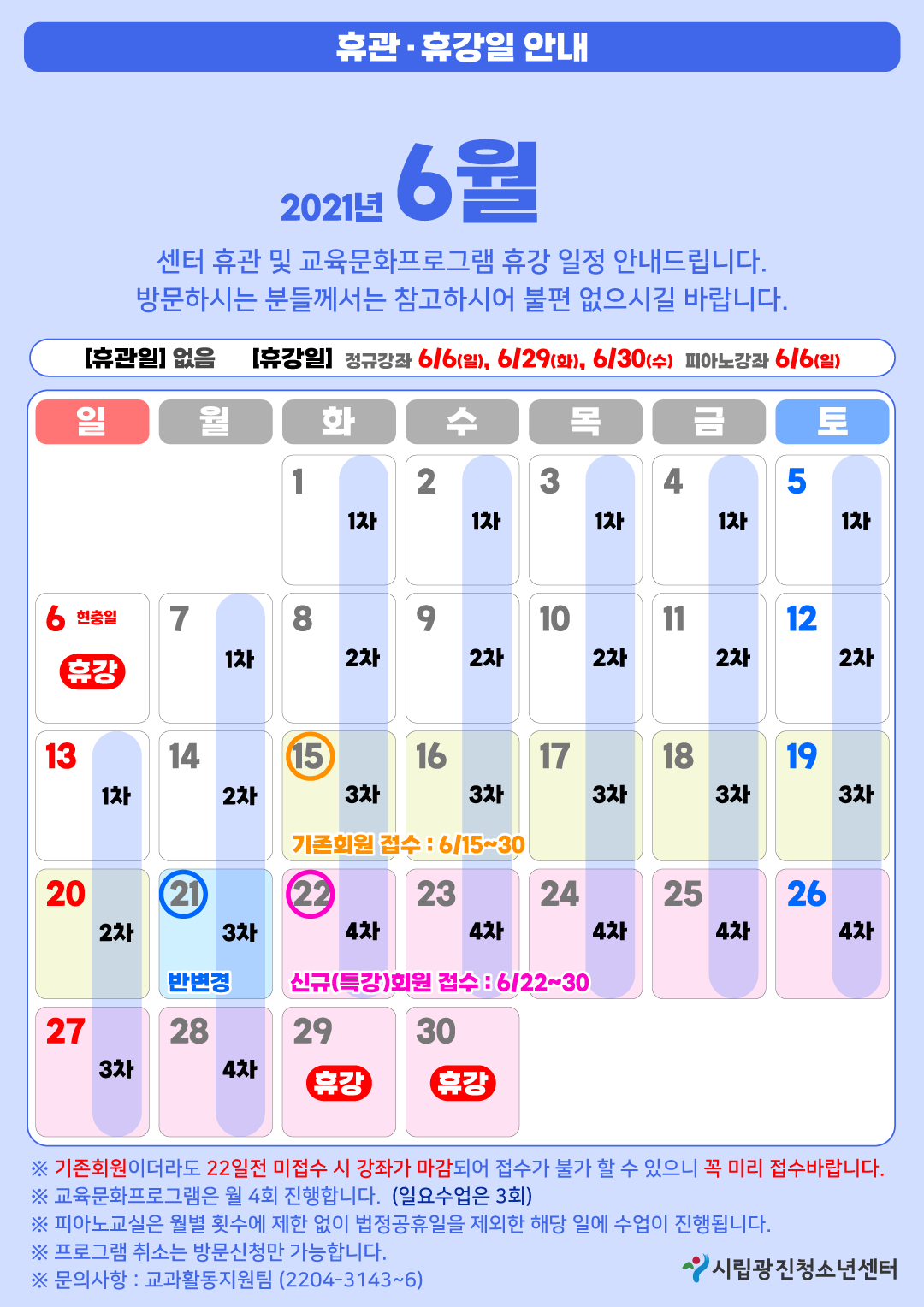 <°Á ÈÞ°ÀÏ> - Á¤±Ô °Á : 6/6(ÀÏ), 6/29(È), 6/30(¼ö) - ÇÇ¾Æ³ë °Á : 6/6(ÀÏ)