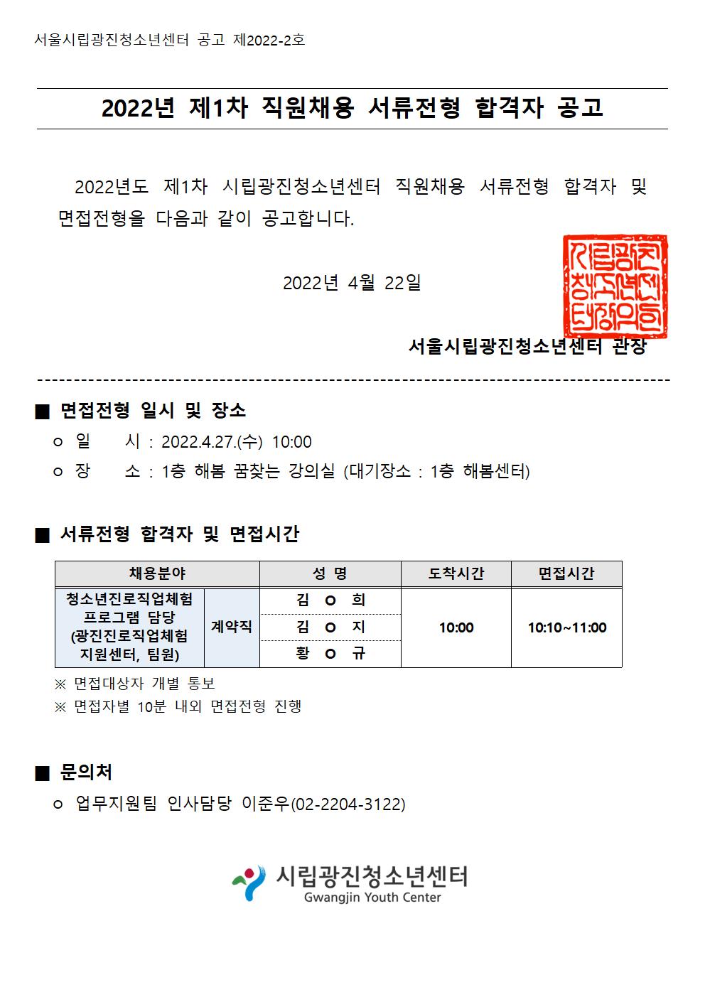 | [ä¿ë] ¼¿ï½Ã¸³±¤ÁøÃ»¼Ò³â¼¾ÅÍ ¼·ùÀüÇü ÇÕ°ÝÀÚ °ø°í | ||