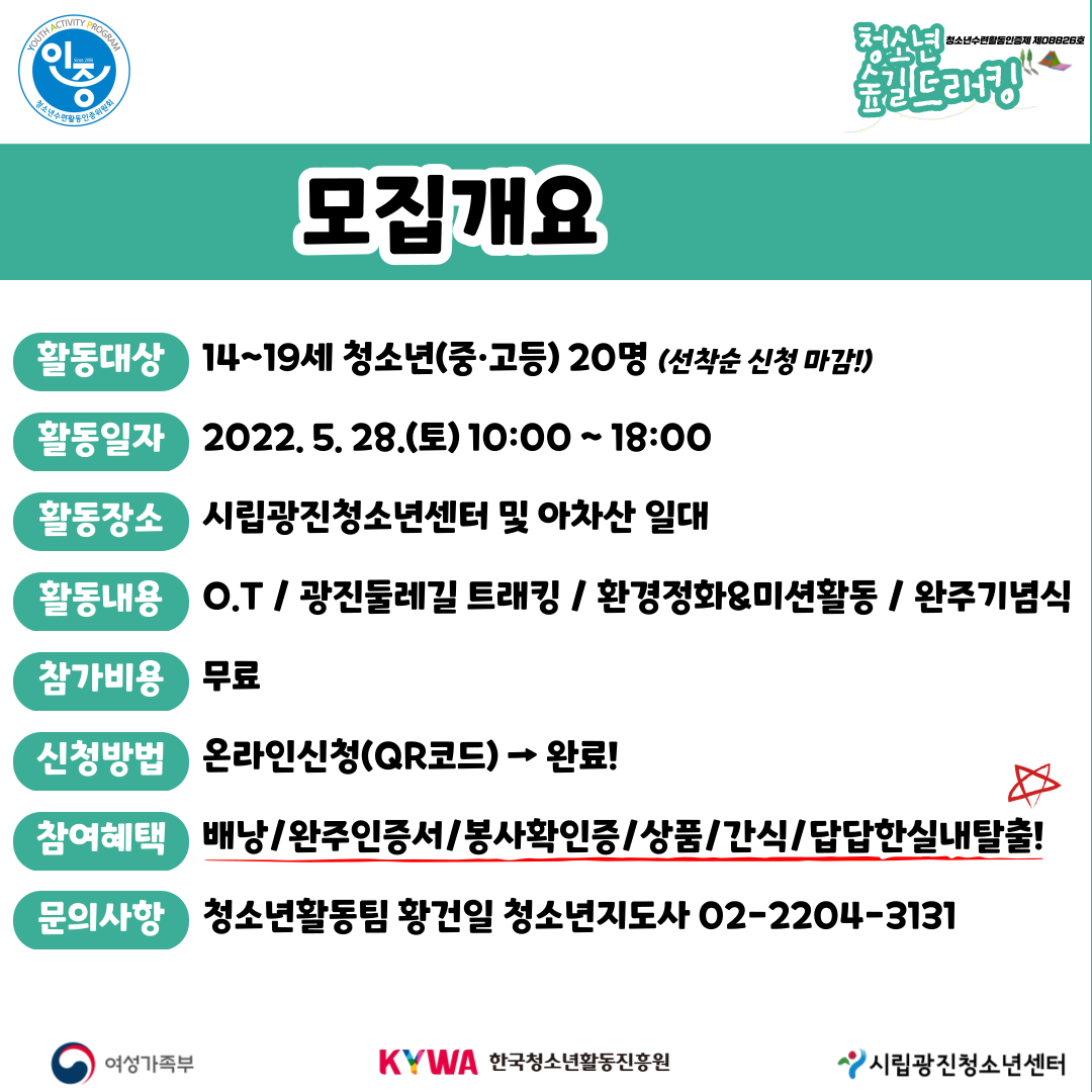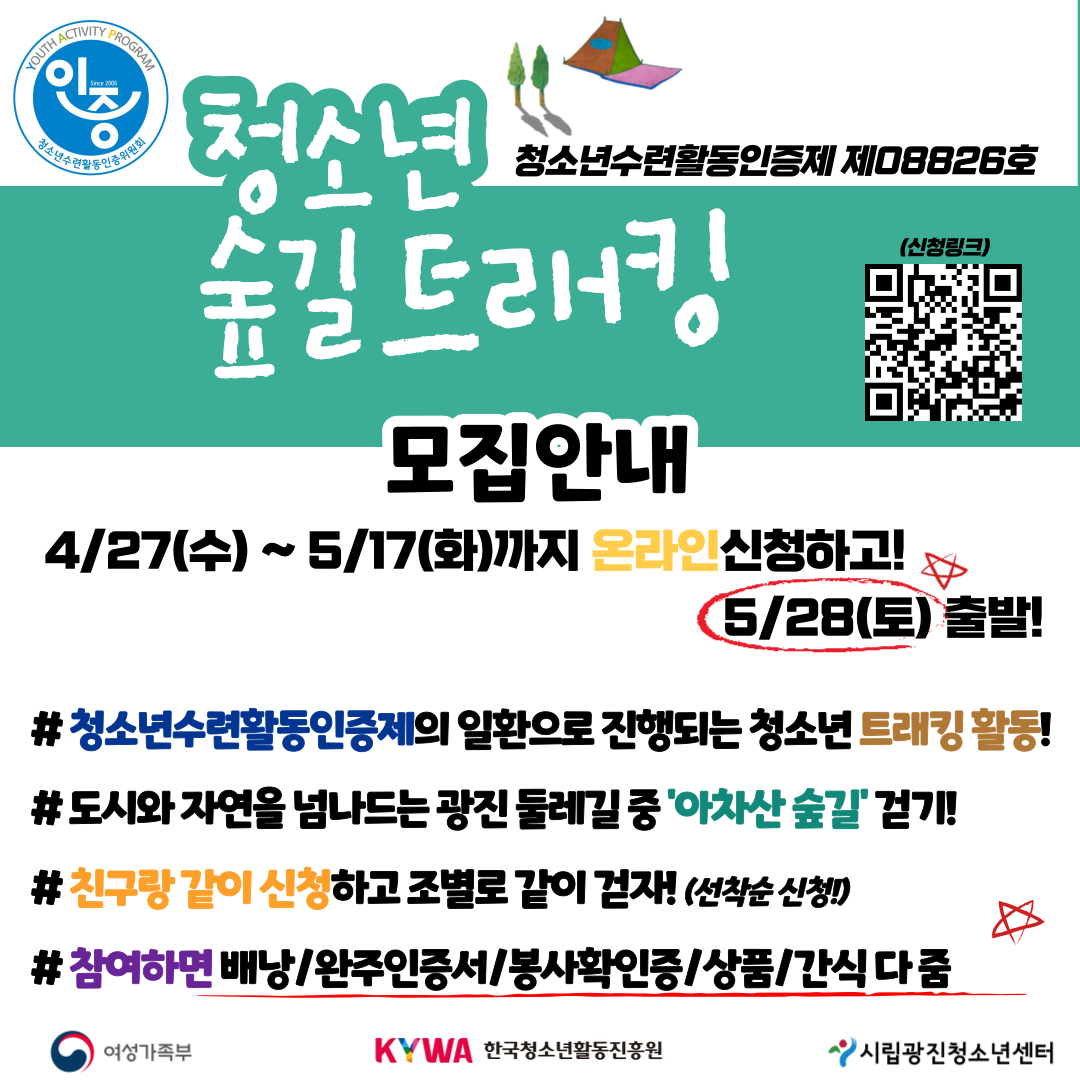 | [¸ðÁý] 2022³â û¼Ò³â ½£±æ Æ®·¡Å·! Ä£±¸¶û °°ÀÌ ¾ÆÂ÷»ê °¥»ç¶÷!(5/17±îÁö_û¼Ò³â¼ö·ÃȰµ¿ÀÎÁõÁ¦) | ||