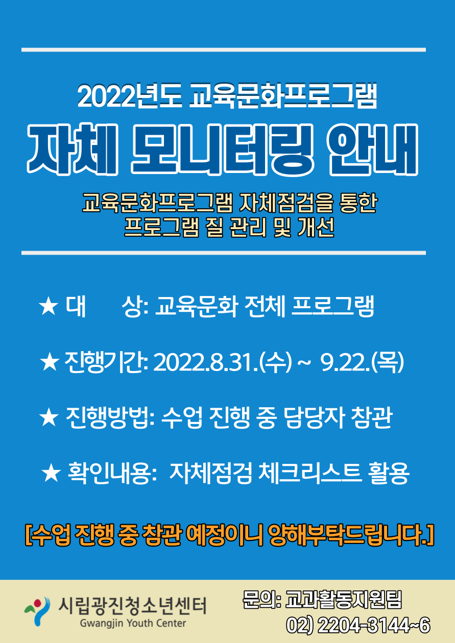 | 2022³âµµ ±³À°¹®ÈÇÁ·Î±×·¥ ÀÚü ¸ð´ÏÅ͸µ ¾È³» | ||