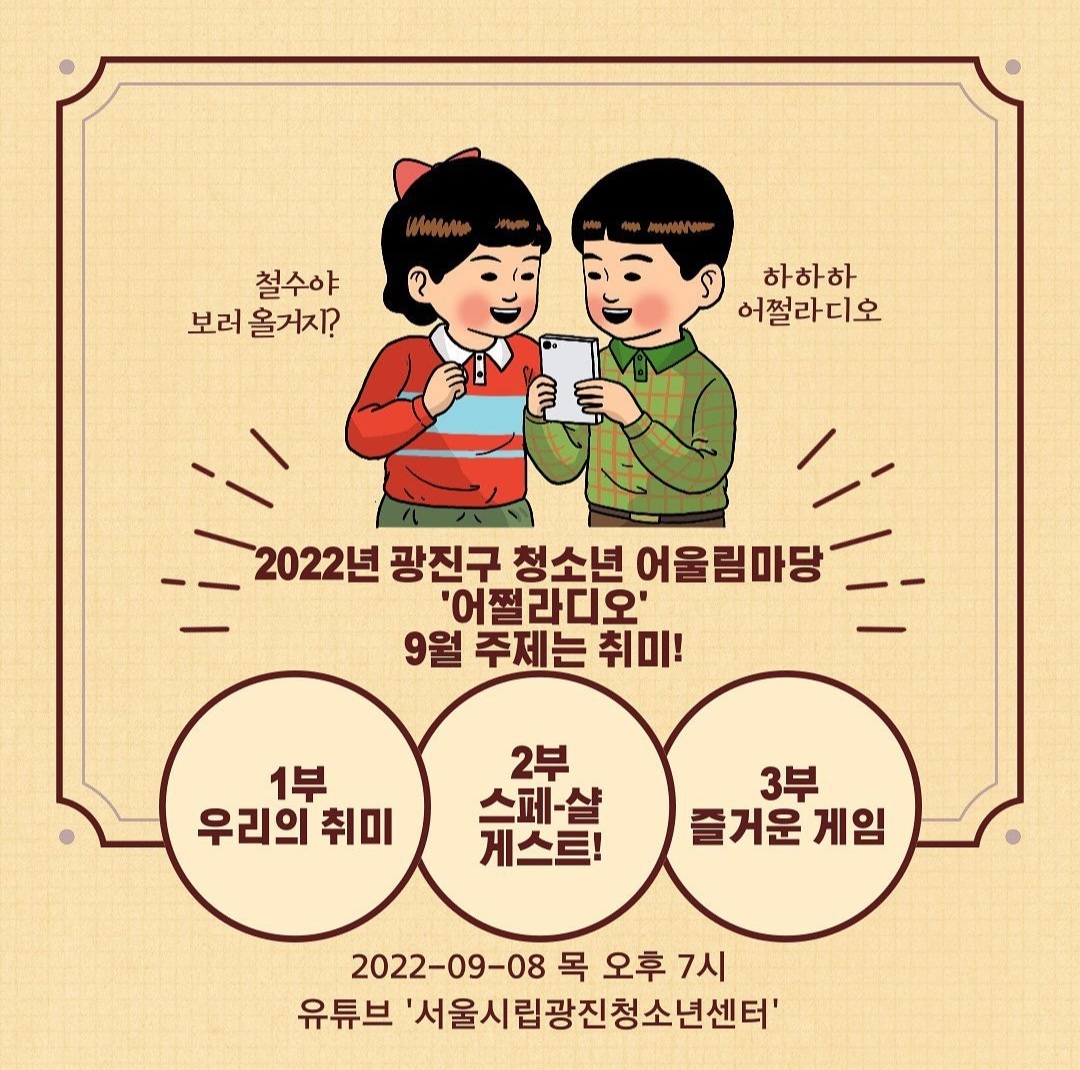 | ÀÛ¼ºÀÚ : ±¤ÁøÃ»¼Ò³â¼¾ÅÍ(@) ÀÛ¼ºÀÏ : 2022-09-08 Á¶È¸¼ö : 2053 | ||