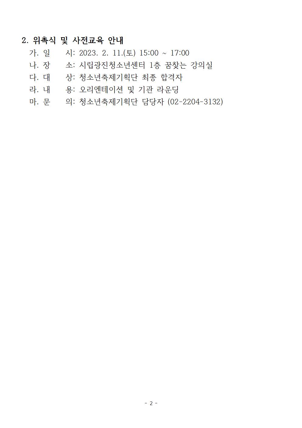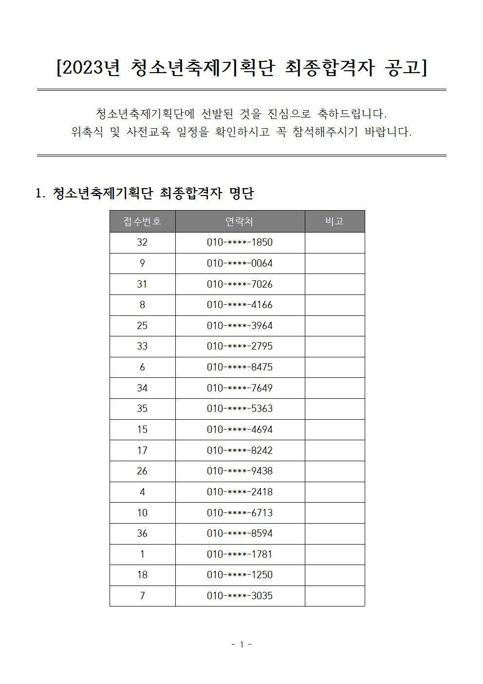 2023³â û¼Ò³âÃàÁ¦±âȹ´Ü ÃÖÁ¾ÇÕ°ÝÀÚ ¾È³» | ||