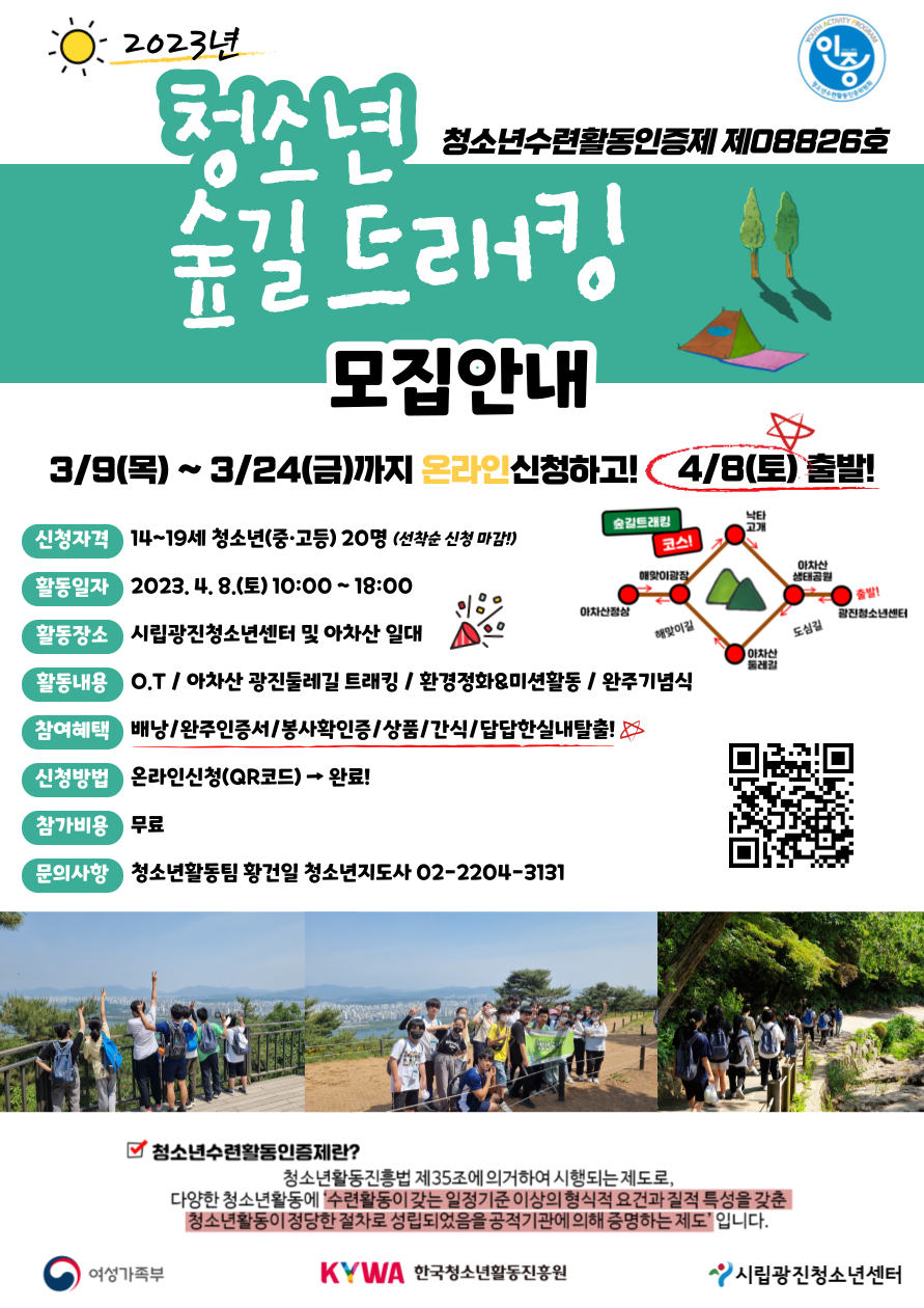 | [¸ðÁý] 2023³â û¼Ò³â¼ö·ÃȰµ¿ÀÎÁõÁ¦ Á¦08826È£ 'û¼Ò³â ½£±æ Æ®·¡Å·' Âü°¡ÀÚ ¸ðÁý !!!!!!!!!!!!!!!!!!!!!!!!!!!!!!!!!!!!!!!!!!!!!!!! | ||