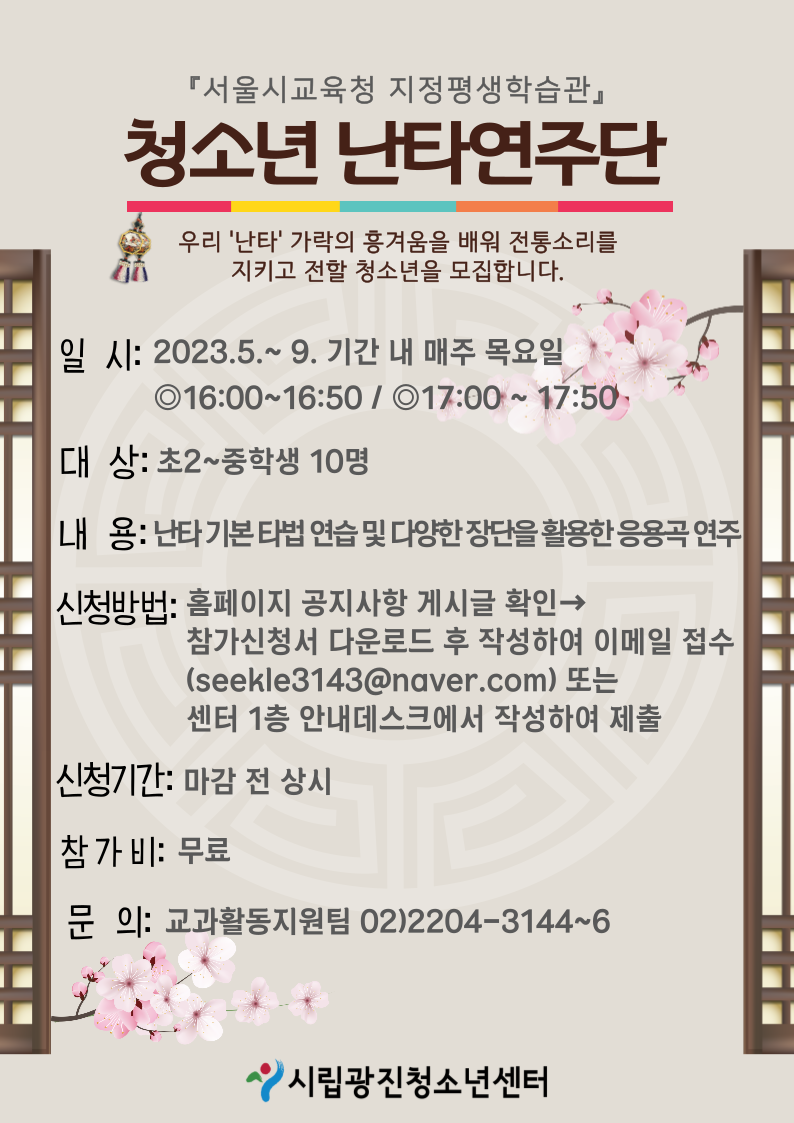 | ÀÛ¼ºÀÚ : ±¤ÁøÃ»¼Ò³â¼¾ÅÍ(@) ÀÛ¼ºÀÏ : 2023-04-01 Á¶È¸¼ö : 2756 | ||