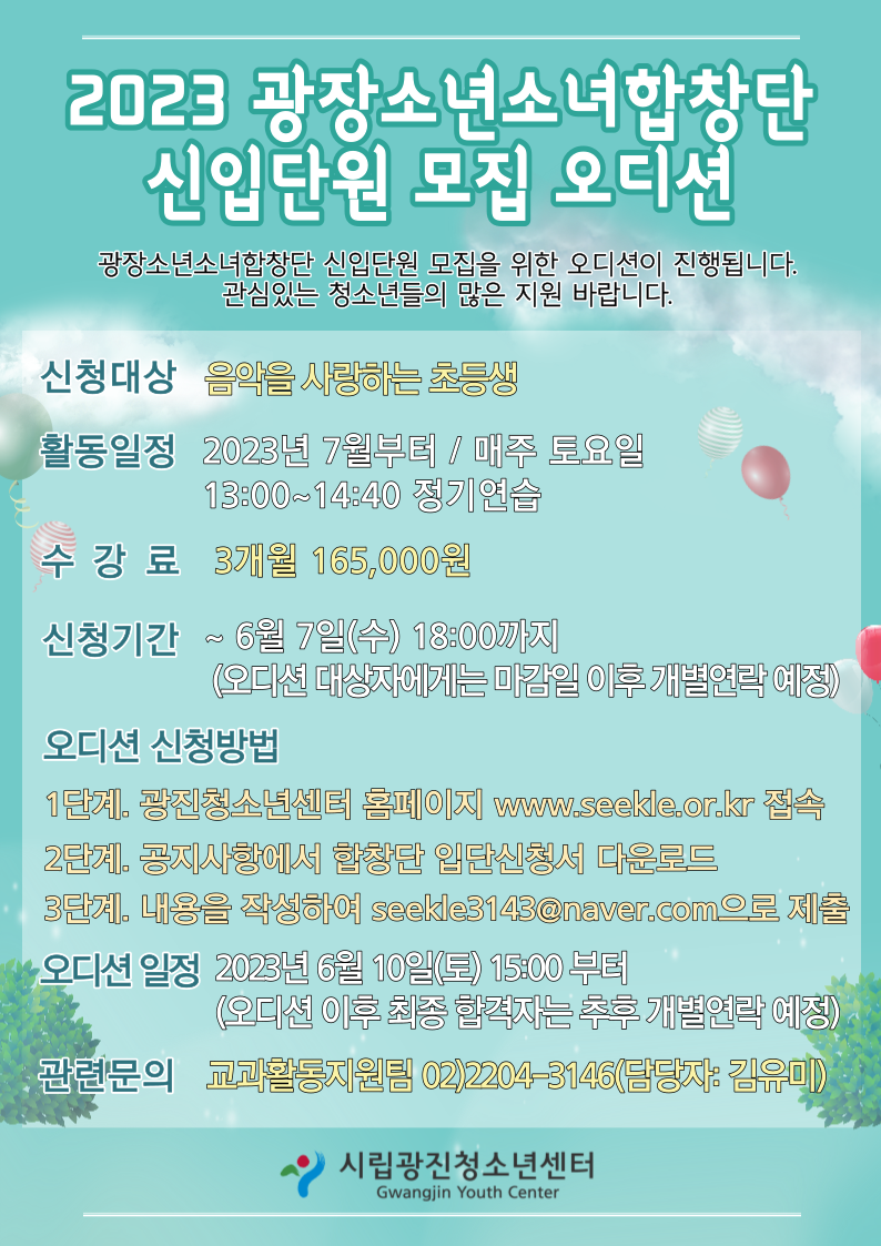 | 2023³â ±¤Àå¼Ò³â¼Ò³àÇÕâ´Ü ½ÅÀÔ´Ü¿ø ¸ðÁý¾È³»(~6/7 18:00±îÁö) | ||