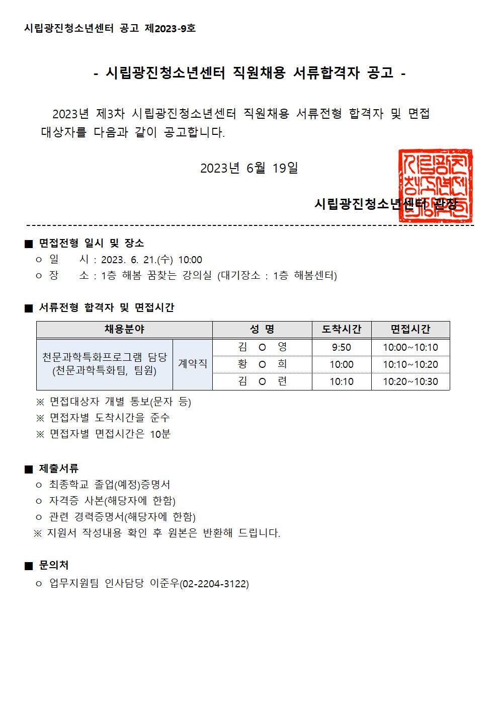 | [ä¿ë] ½Ã¸³±¤ÁøÃ»¼Ò³â¼¾ÅÍ Á÷¿øÃ¤¿ë ¼·ùÇÕ°ÝÀÚ °ø°í(õ¹®°úÇÐÆ¯ÈÇÁ·Î±×·¥ ´ã´ç, °è¾àÁ÷) | ||