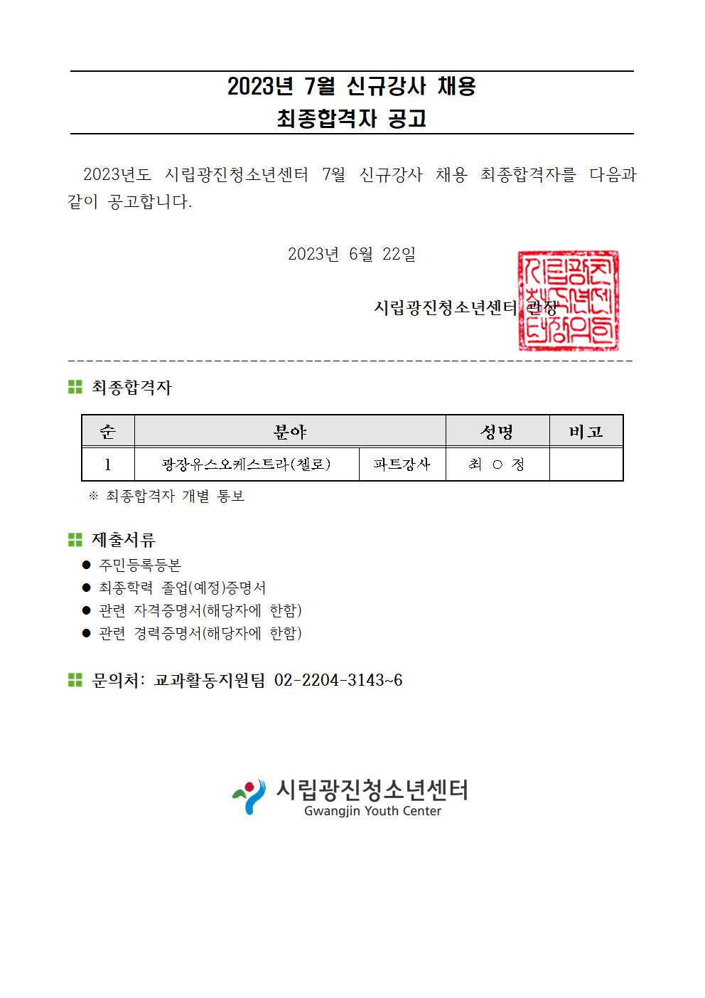 | [°»çä¿ëÇÕ°ÝÀÚ°ø°í] 2023³â 7¿ù ½Å±Ô°»ç ä¿ë ÃÖÁ¾ ÇÕ°ÝÀÚ °ø°í | ||