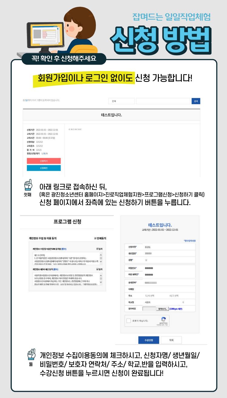 ¡ÛÀϽà : 11¿ù 4ÀÏ(Åä) 10:00~12:00 ¡ÛÀå¼Ò : ±¤ÁøÃ»¼Ò³â¼¾ÅÍ(´ë¸é) ¡Û´ë»ó : Ãʵî 3~6Çгâ 20¸í ¡Û³»¿ë : Á¶Çâ»ç¿ÍÀÇ ¸¸³², ȯ°æÀ» »ý°¢ÇÑ Ãµ¿¬ ¼¤Çª¹Ù ¸¸µé±â ¡ÛÁ¢¼öÀÏÀÚ : 10¿ù 24ÀÏ(È) 10:00~ ¡ÛÁ¢¼ö¹æ¹ý : https://www.seekle.or.kr/sub06/sub04_view.php?p_id=272&page=1& ¡Û±âŸ¾È³»: Ãë¼Ò ½Ã, ¹Ýµå½Ã ´ã´çÀÚ¿¡°Ô ¿¬¶ô ºÎʵ右´Ï´Ù. (02-2204-3138) À§ ½Åû¸µÅ© ³» °Ô½Ã±ÛÀ» ¹Ýµå½Ã Á¤µ¶ ÈÄ ½Åû ºÎʵ右´Ï´Ù! °Ô½Ã±ÛÀ» ÀÐÁö ¾Ê°í ¹ß»ýÇÏ´Â ºÒÀÌÀÍÀº Ã¥ÀÓÁöÁö ¾Ê½À´Ï´Ù😥