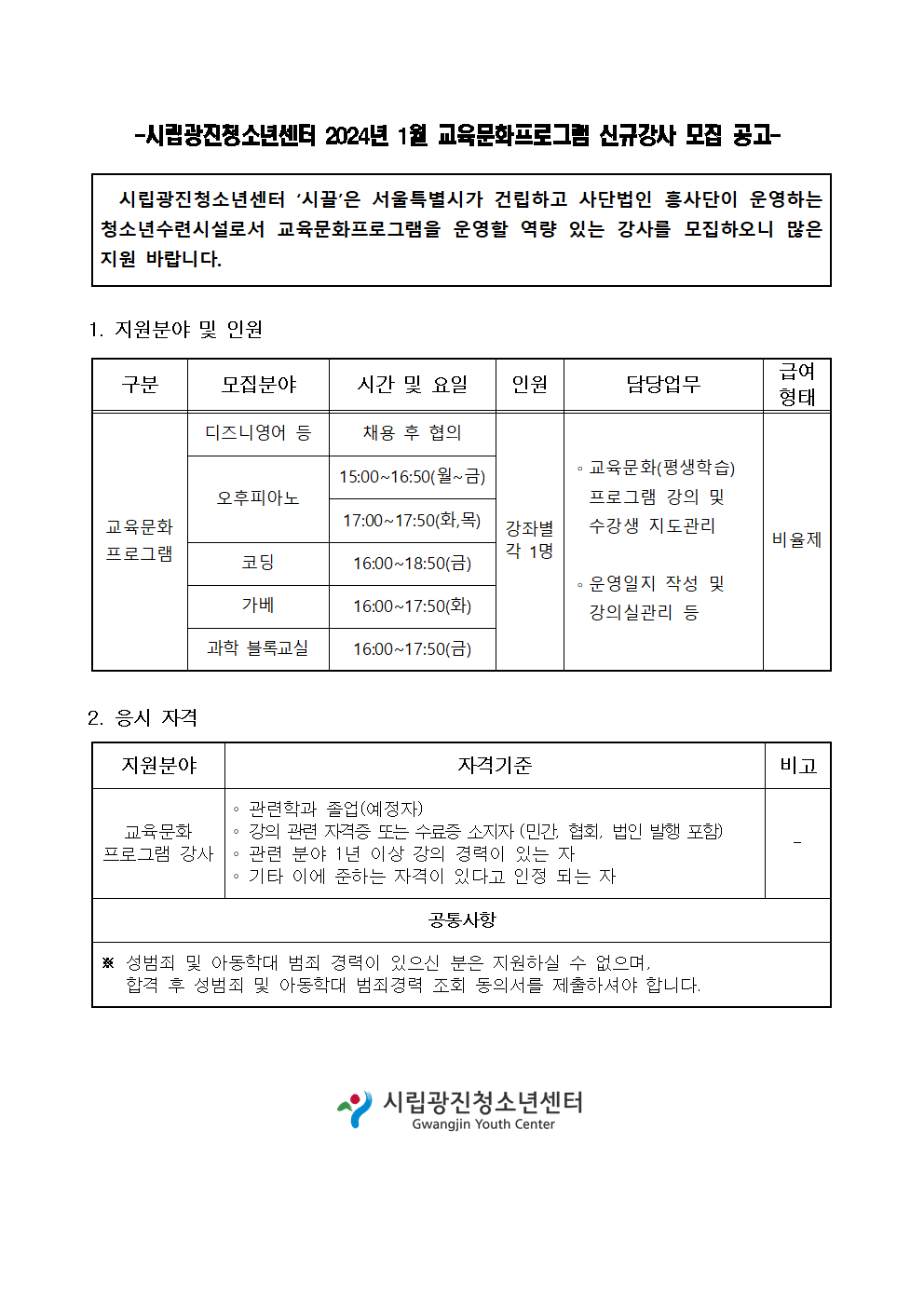 ´ÙÀ½±Û | [ä¿ë] ½Ã¸³±¤ÁøÃ»¼Ò³â¼¾ÅÍ Á÷¿øÃ¤¿ë ÃÖÁ¾ÇÕ°ÝÀÚ °ø°í |